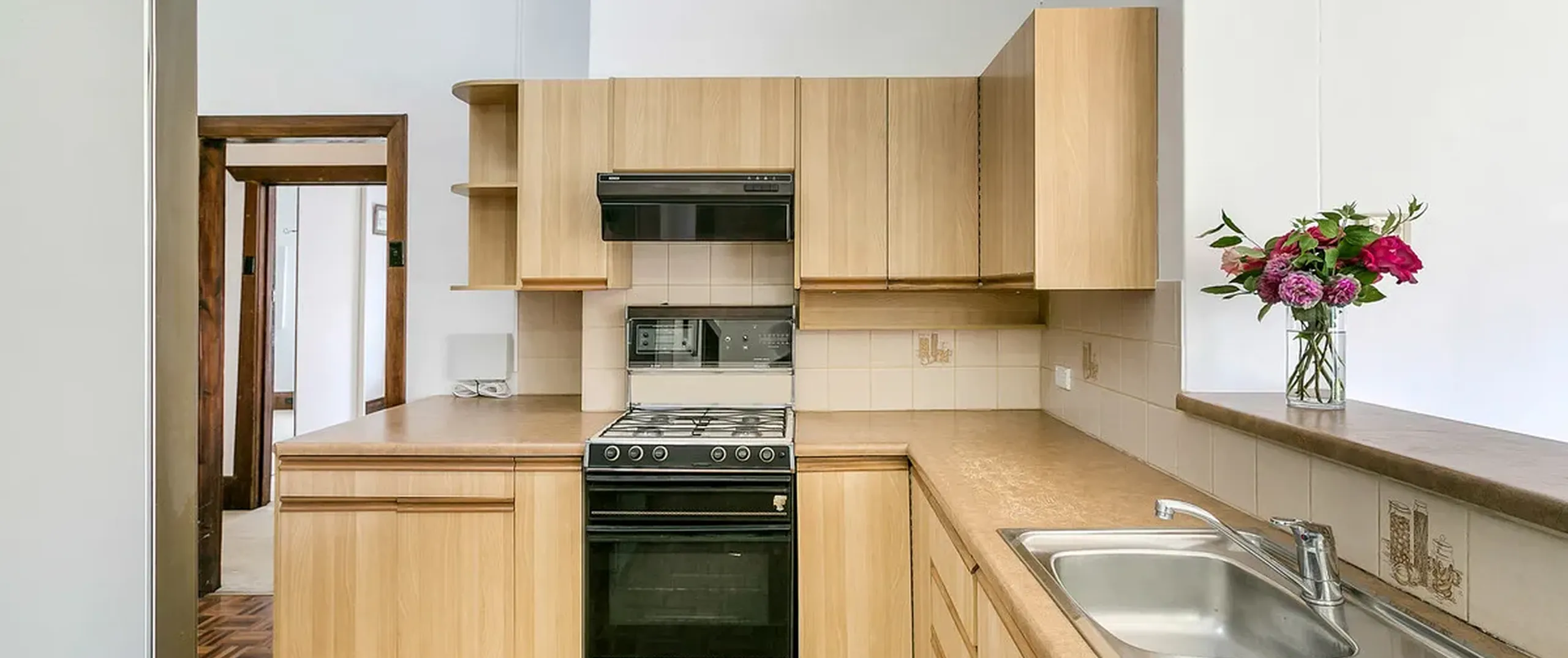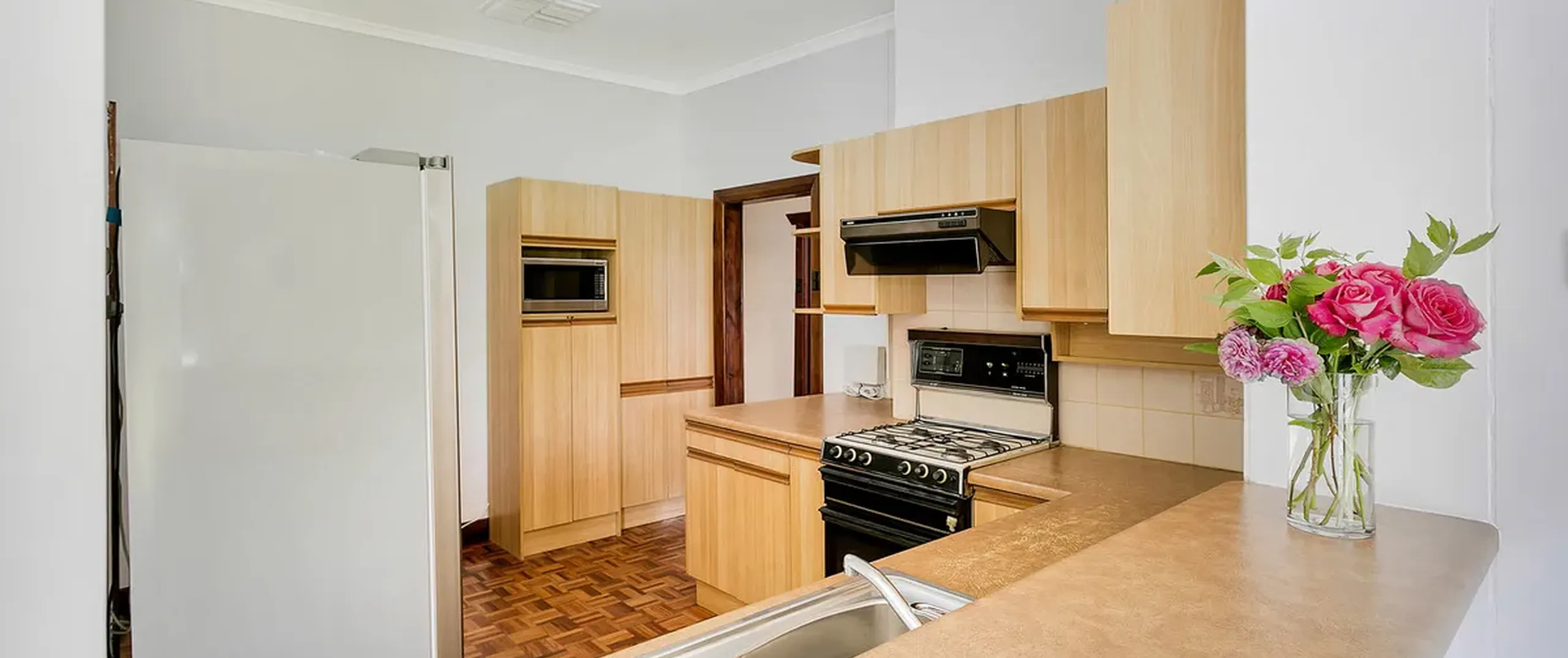 - Timber kitchen with gas cooktop, dishwasher, breakfast bar, walk-in pantry and ample bench and cupboard space