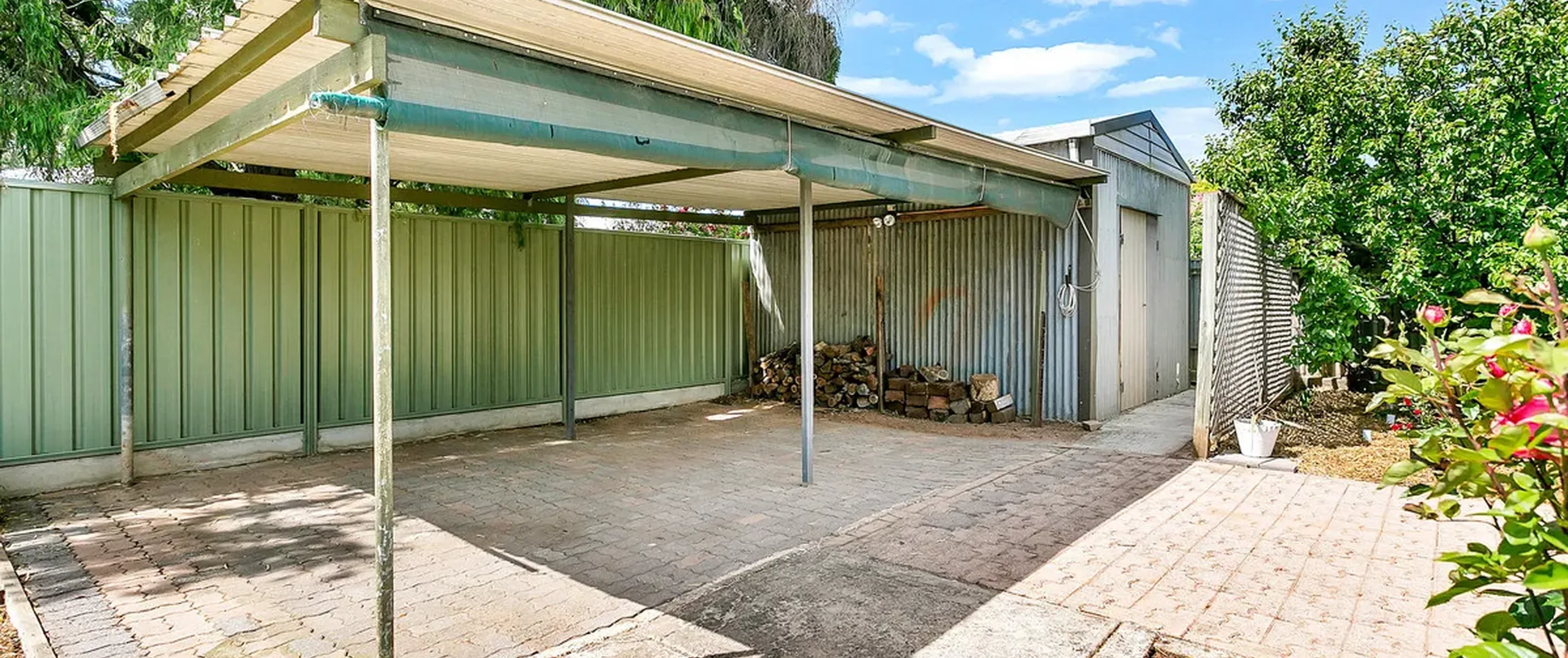 - Carport, garden shed and rainwater tank in rear yard