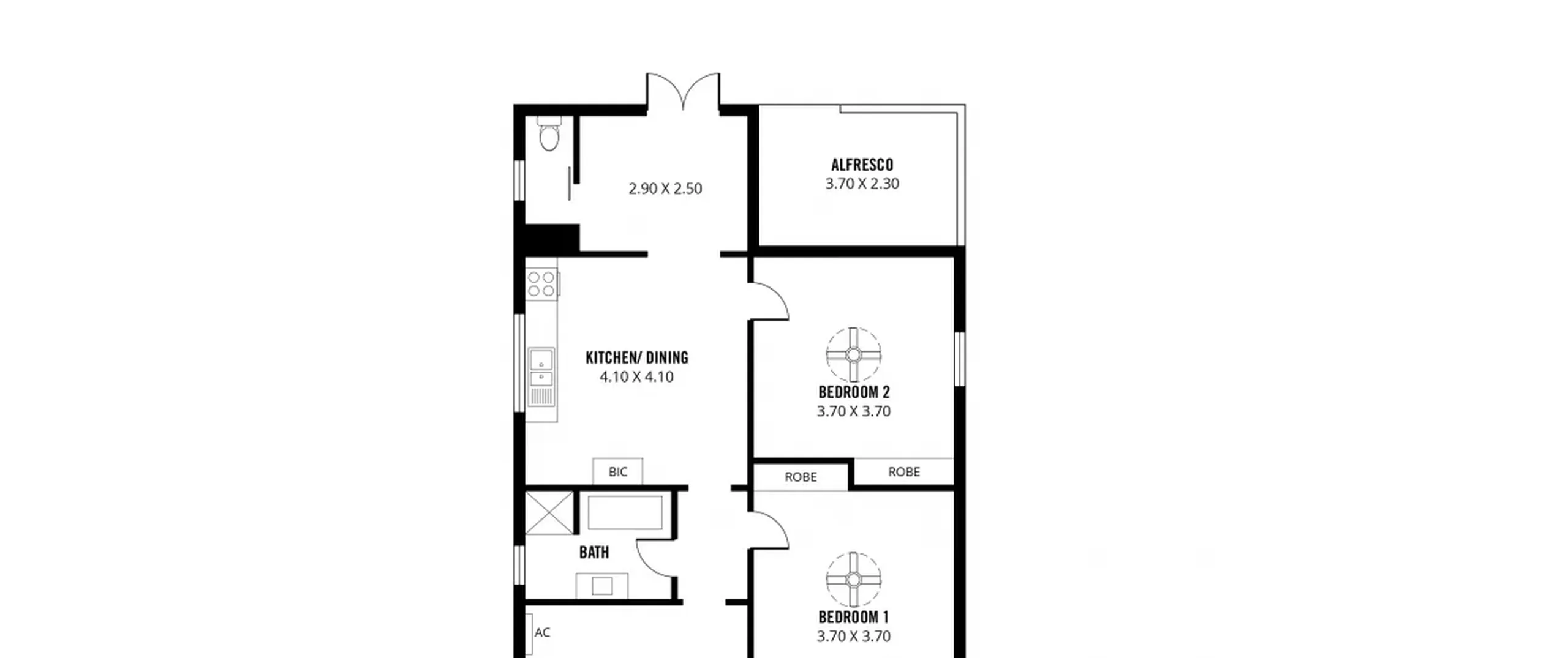 - 2 good sized bedrooms, both with built-in robe and ceiling fan