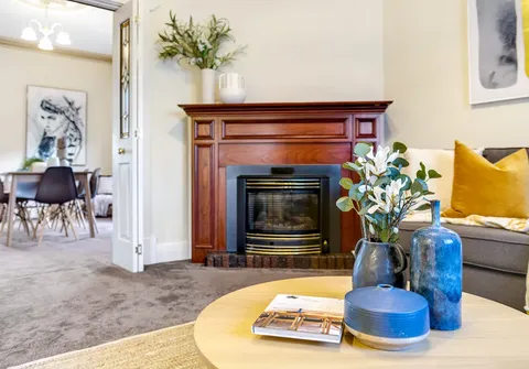 - Spacious formal dining with split system air conditioner, fireplace and stylish bi-fold doors to lounge
