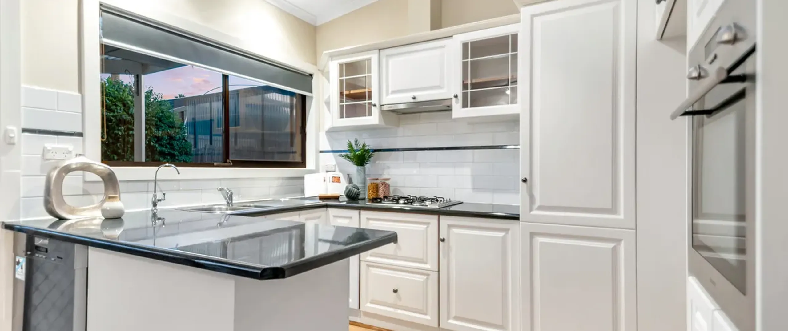- Modern kitchen with ample cupboard and bench space and stainless steel appliances