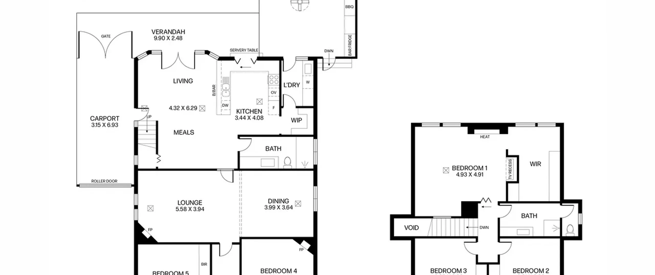 - Generous bedrooms 4 and 5, bedroom 4 with ornate fire place and bedroom 5 with built-in robe