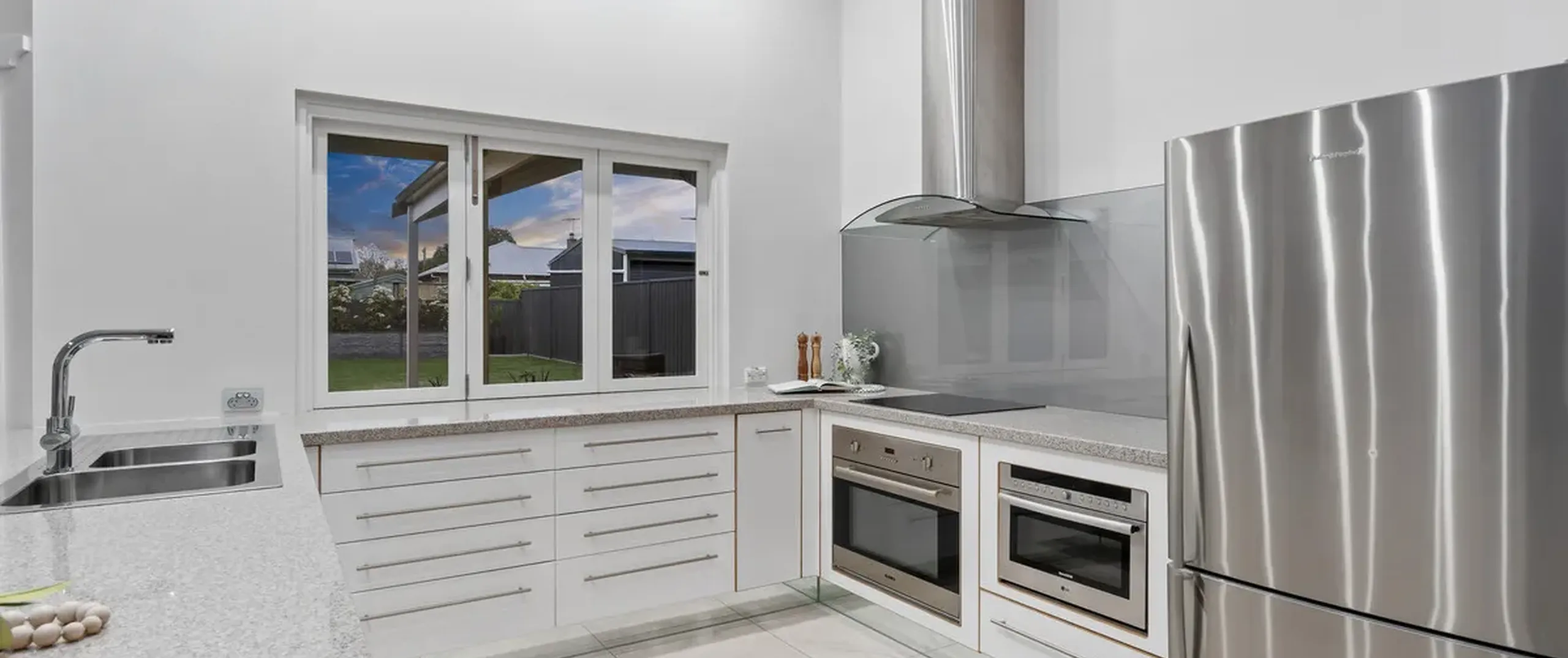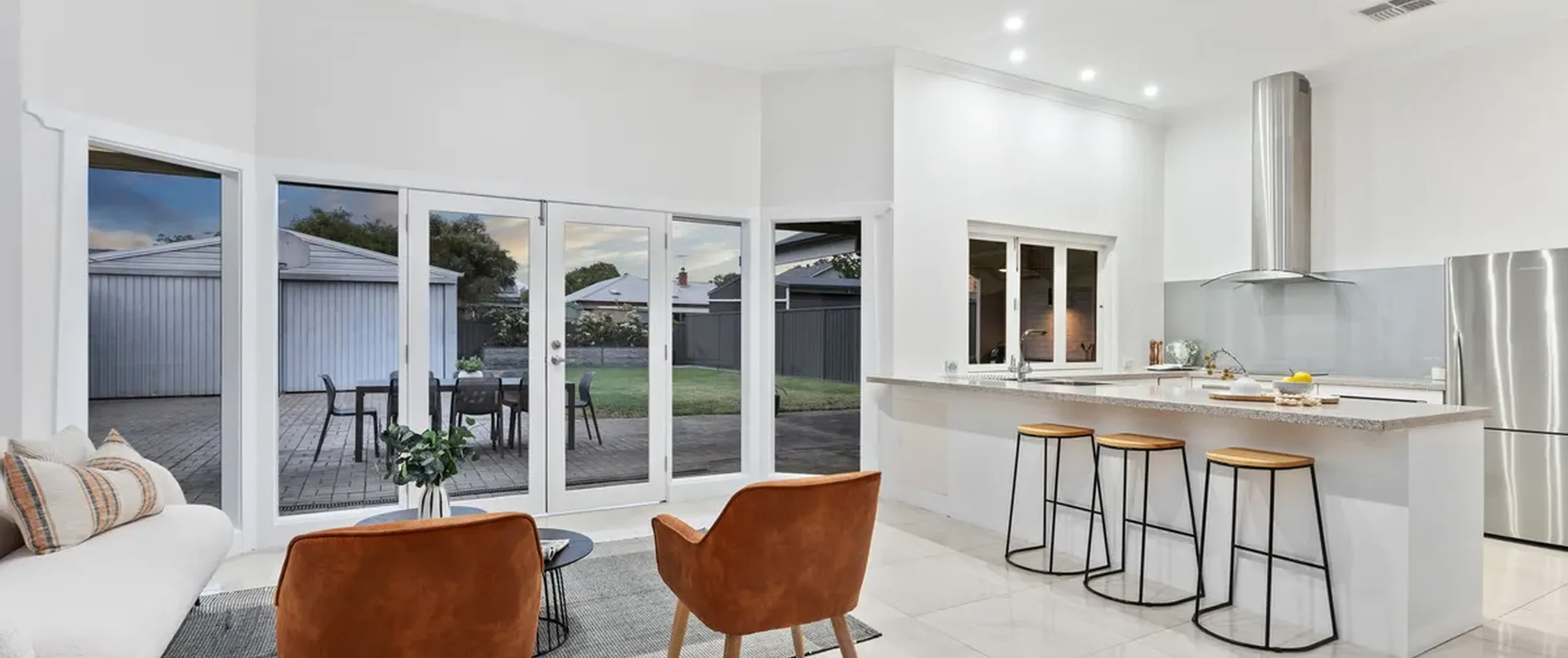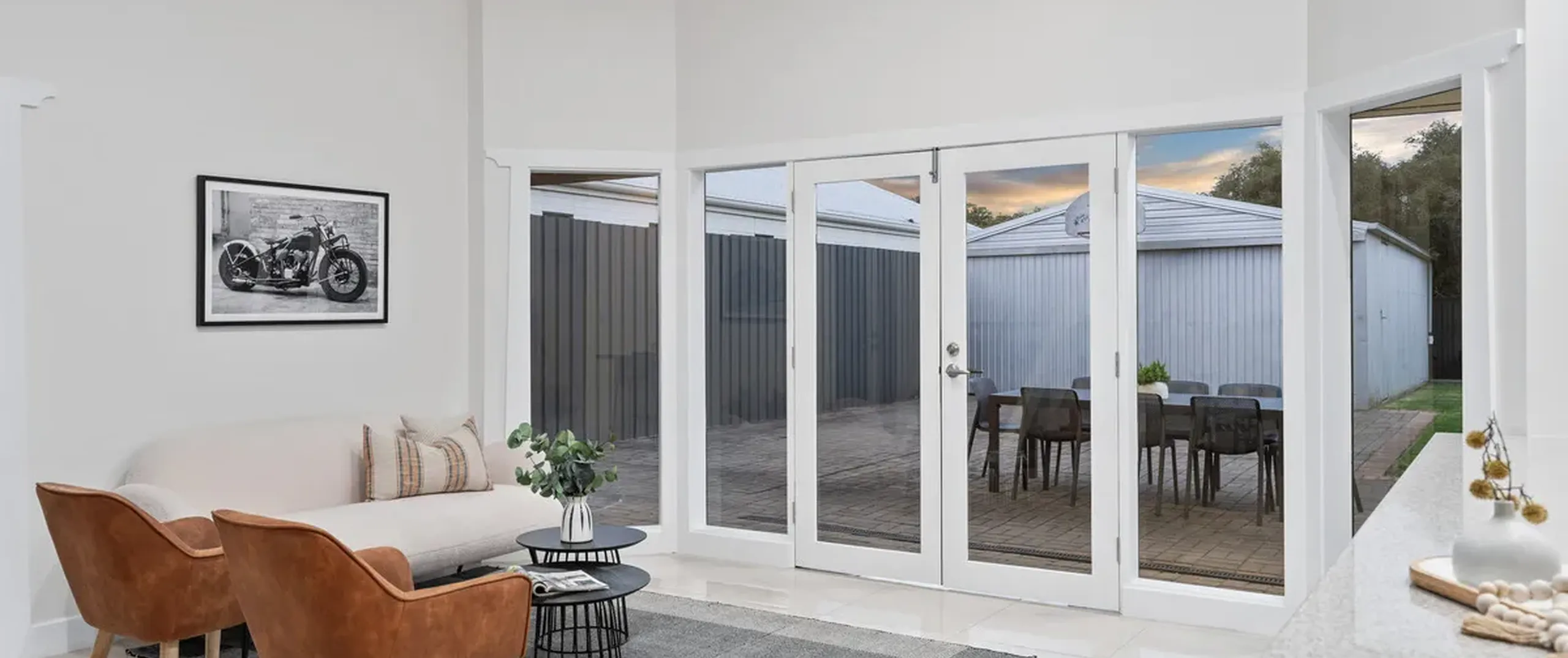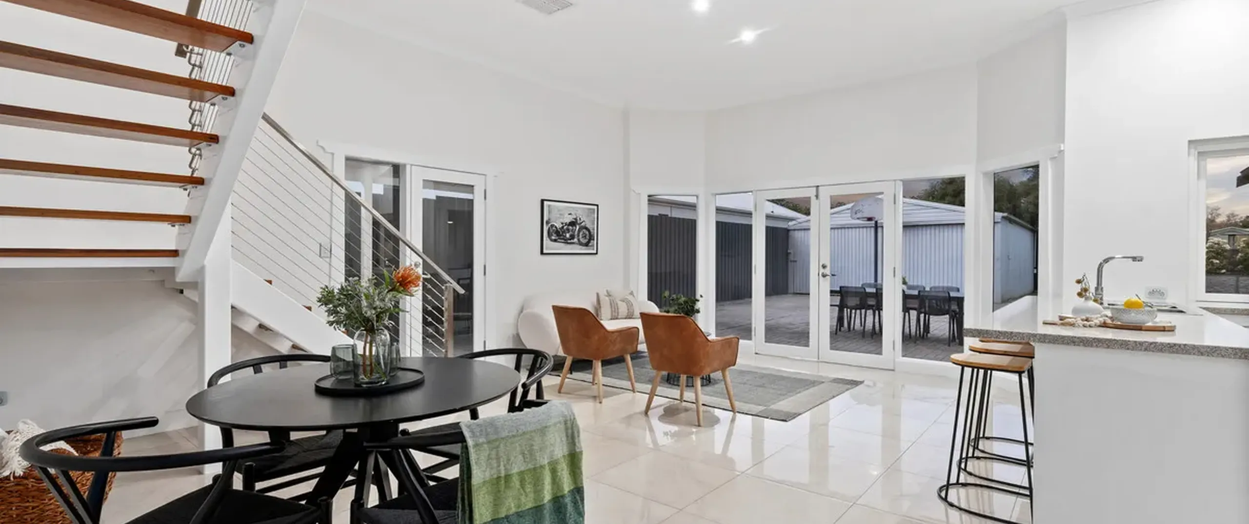 - Bright, open plan meals, kitchen and living area with French doors opening to the entertaining area creating a seamless flow between indoor and outdoor living