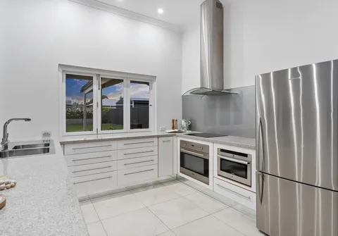 - Modern high-quality kitchen with stainless steel oven, dishwasher, large walk-in pantry, abundance of cupboard storage, breakfast bar and servery that can open to the entertaining area