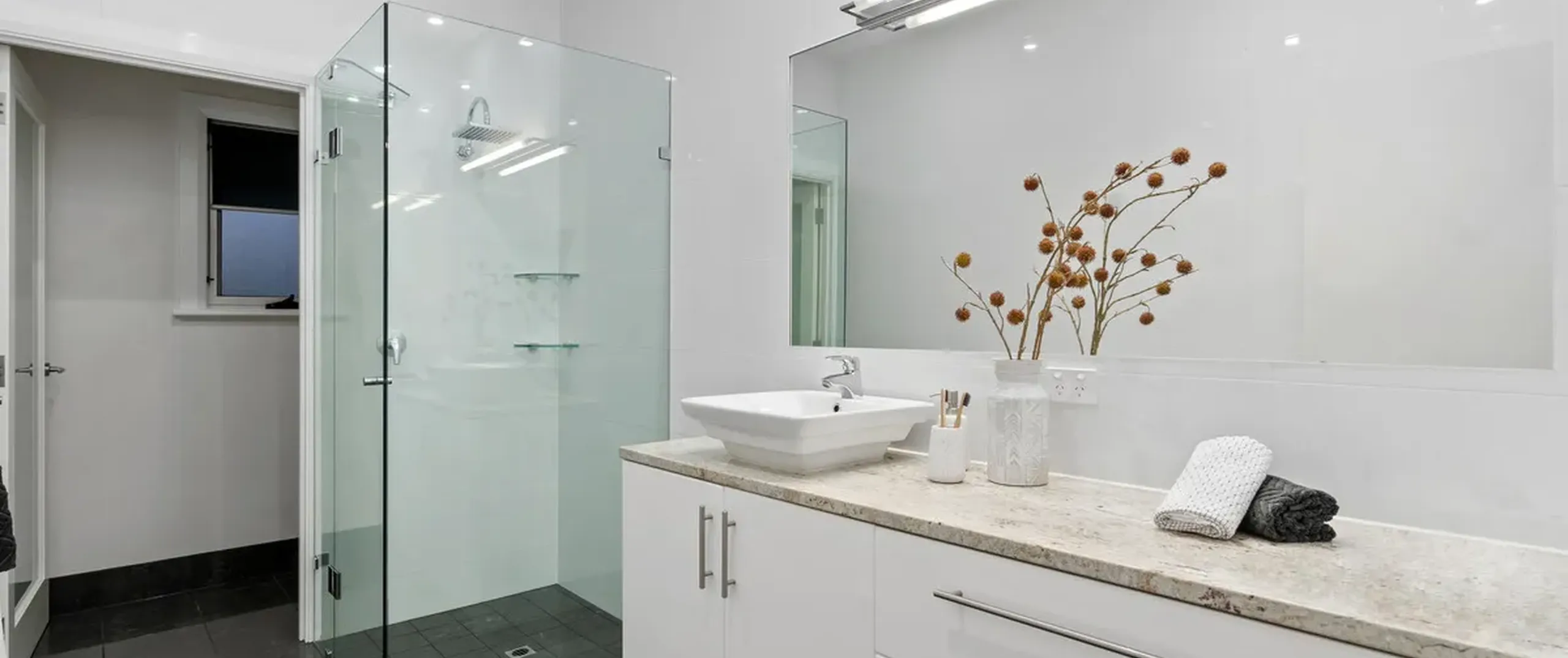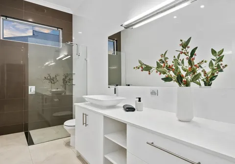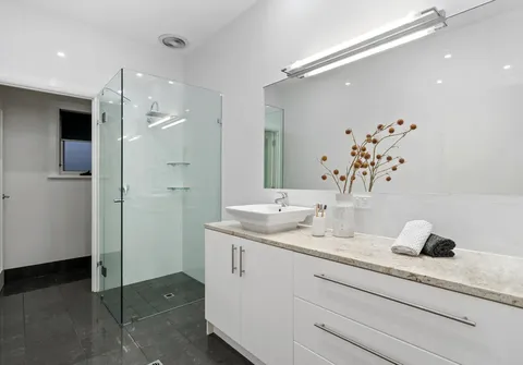 - Stunning bathroom to service the upper level boasting floor to ceiling tiles, stone bench top, large mirror, frameless shower and separate toilet