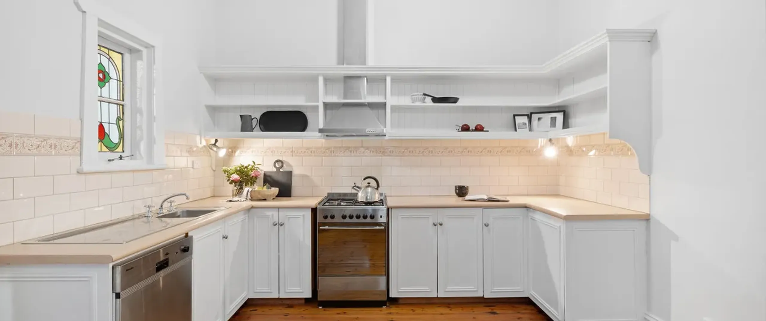 - Charming kitchen with stainless steel appliances including dishwasher, standalone gas cooktop and oven and complete with ample cupboard space