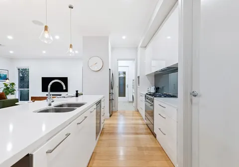 Combining modern elegance with quality features, everything has been executed to perfection. Stunning floorboards flow seamlessly from the entry and continue through the retreat before taking you to the commodious open plan family and meals area. A stylish kitchen is impressively showcased in this space, boasting sweeping stone benchtops, quality 2pac cabinetry with soft close drawers, large walk-in pantry and quality stainless steel appliances including a SMEG oven, gas cooktop and Miele dishwasher; the avid home chef is sure to love hosting dinners here.