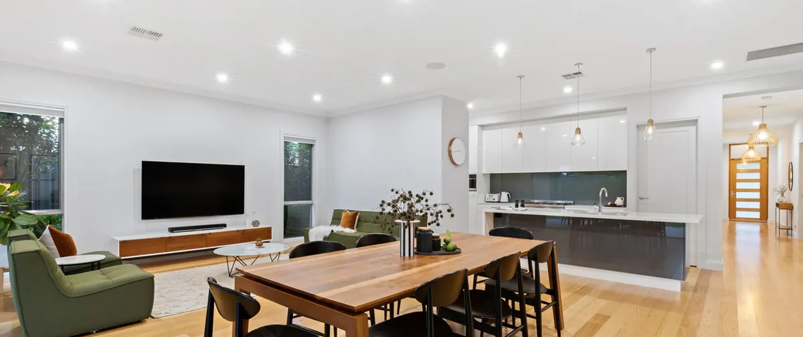 - Stunning Tasmanian Oak hardwood floors throughout living spaces