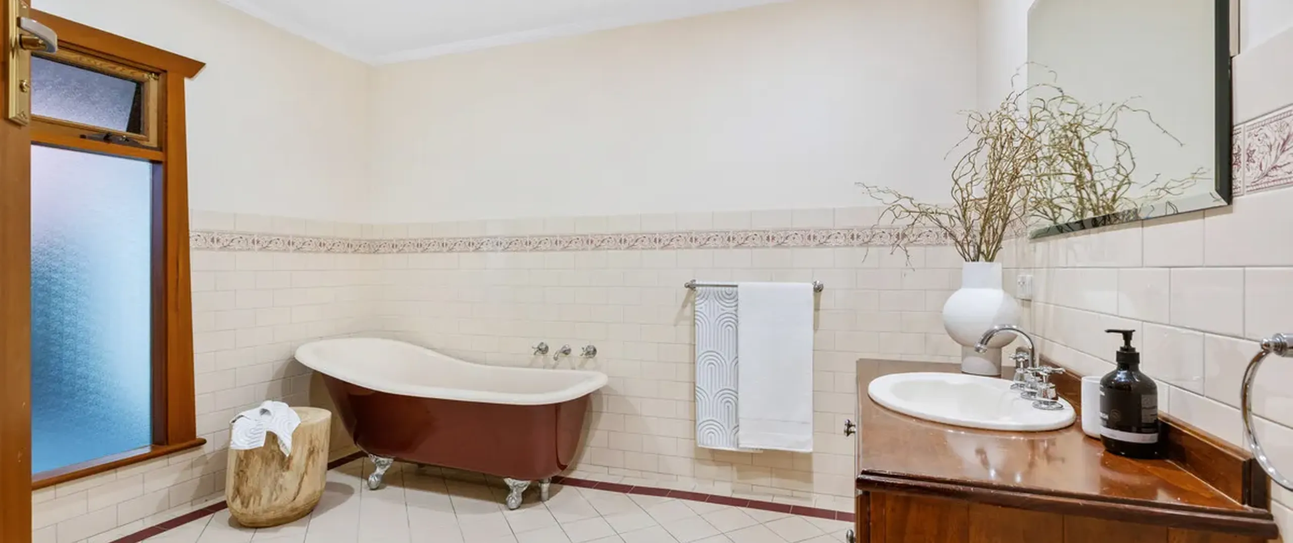 - Well-appointed main bathroom with standalone bath and separate shower