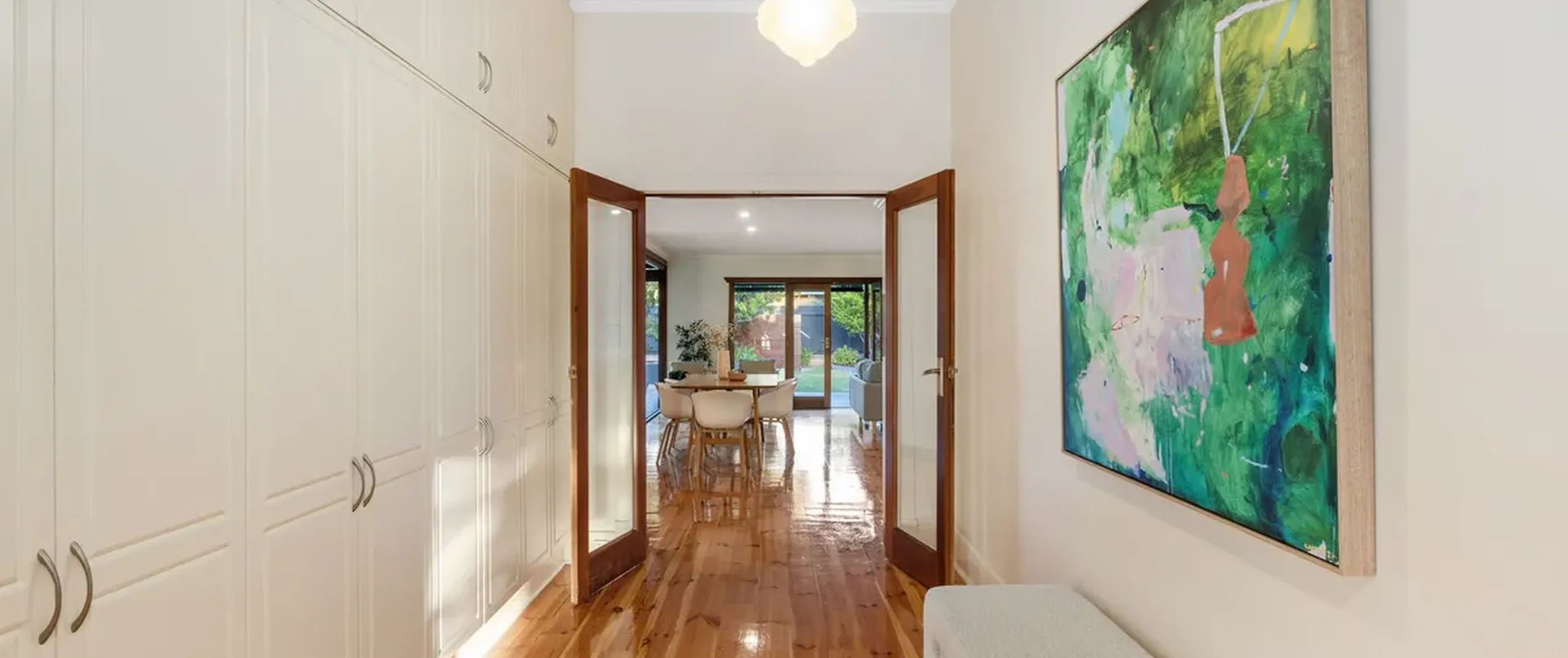 - Wall-length built-in cupboard to the hallway