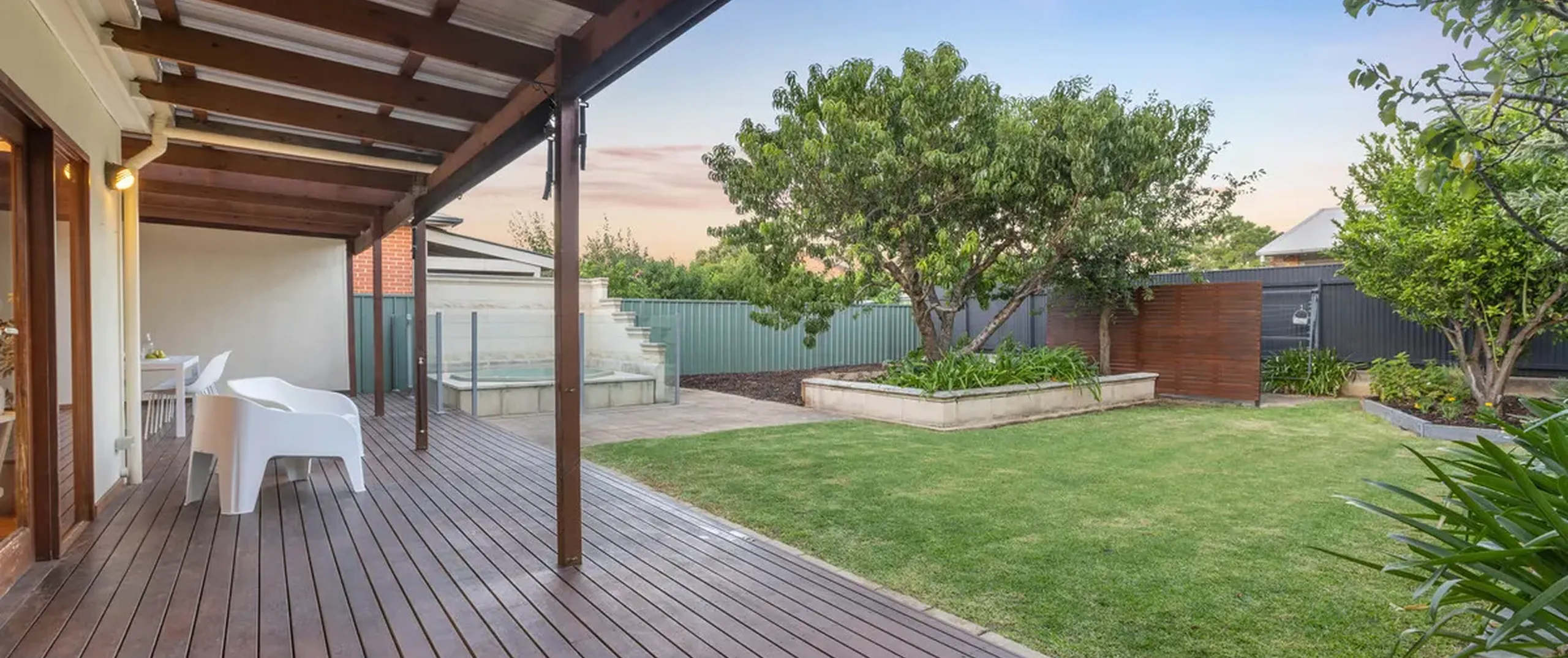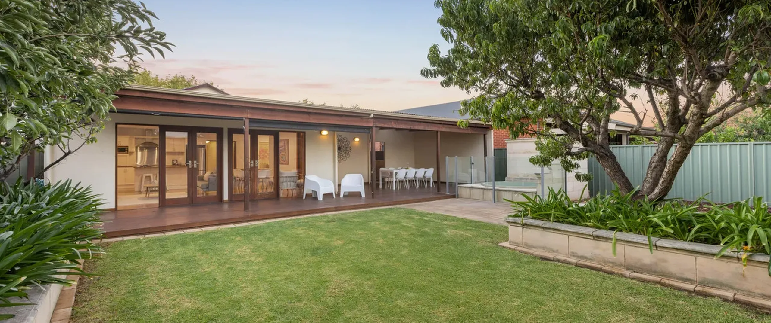 - Manicured, fully fenced yard with low-maintenance gardens