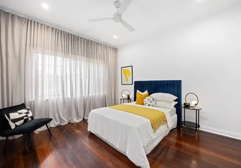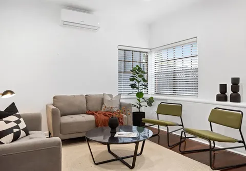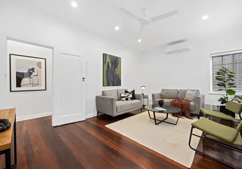- Spacious living upon entry, offering a split system air conditioner and ceiling fan for year-round comfort
