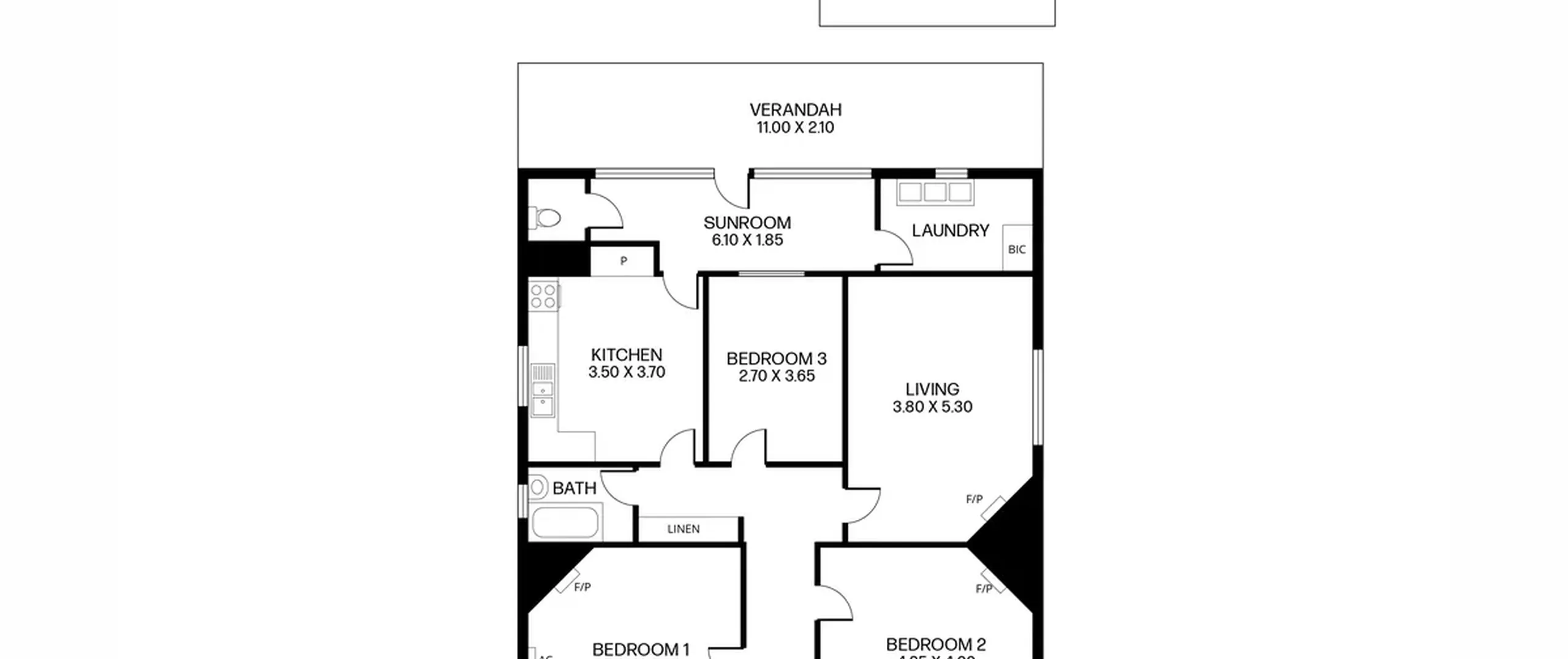 - Three bedrooms, with Bedrooms 1 and 2 being double-sized and featuring fireplaces; Bedroom 1 also includes an air-conditioner