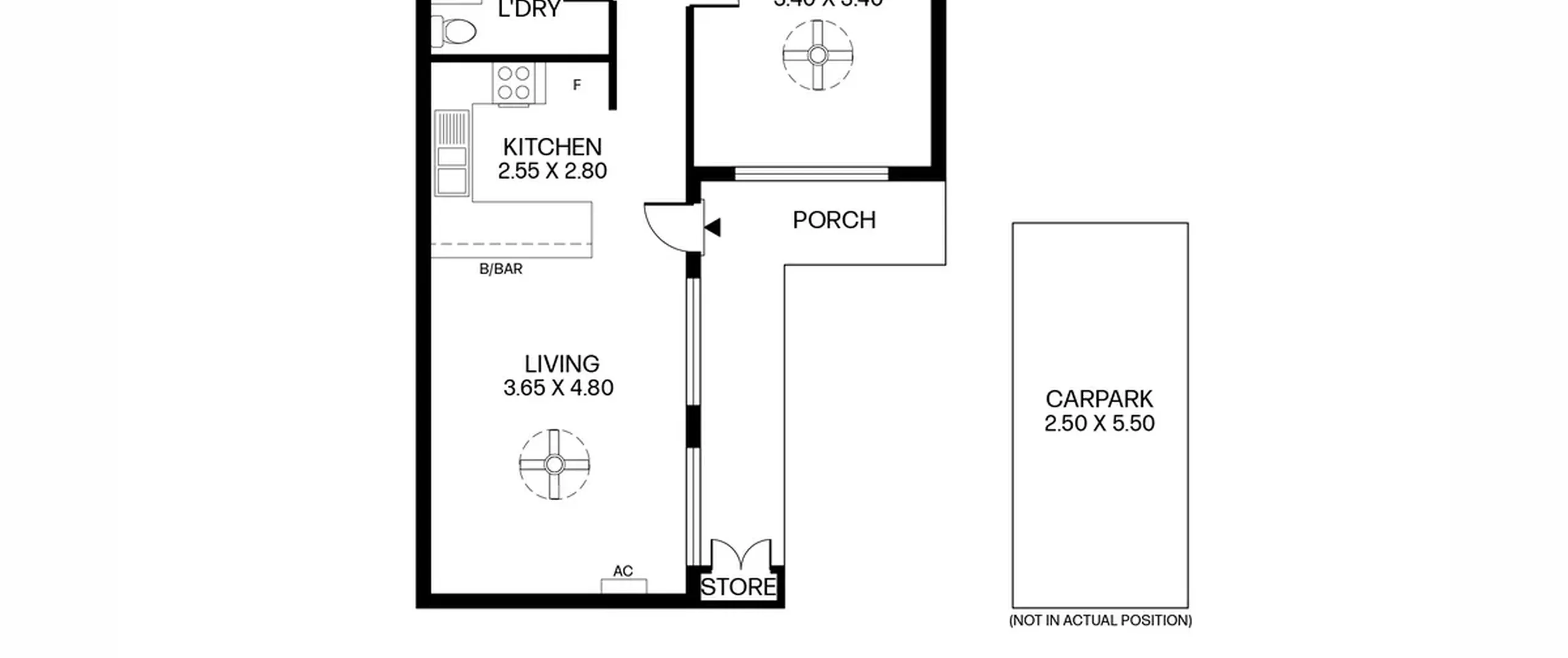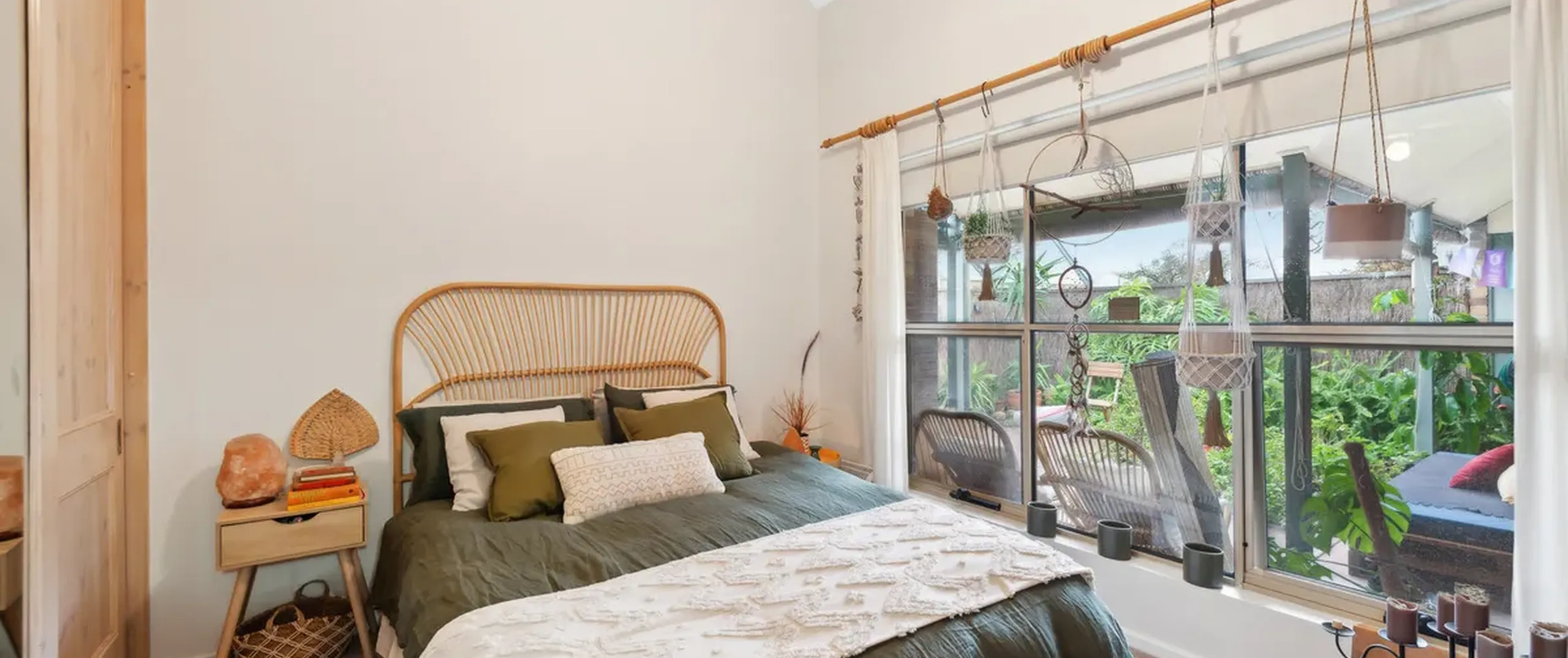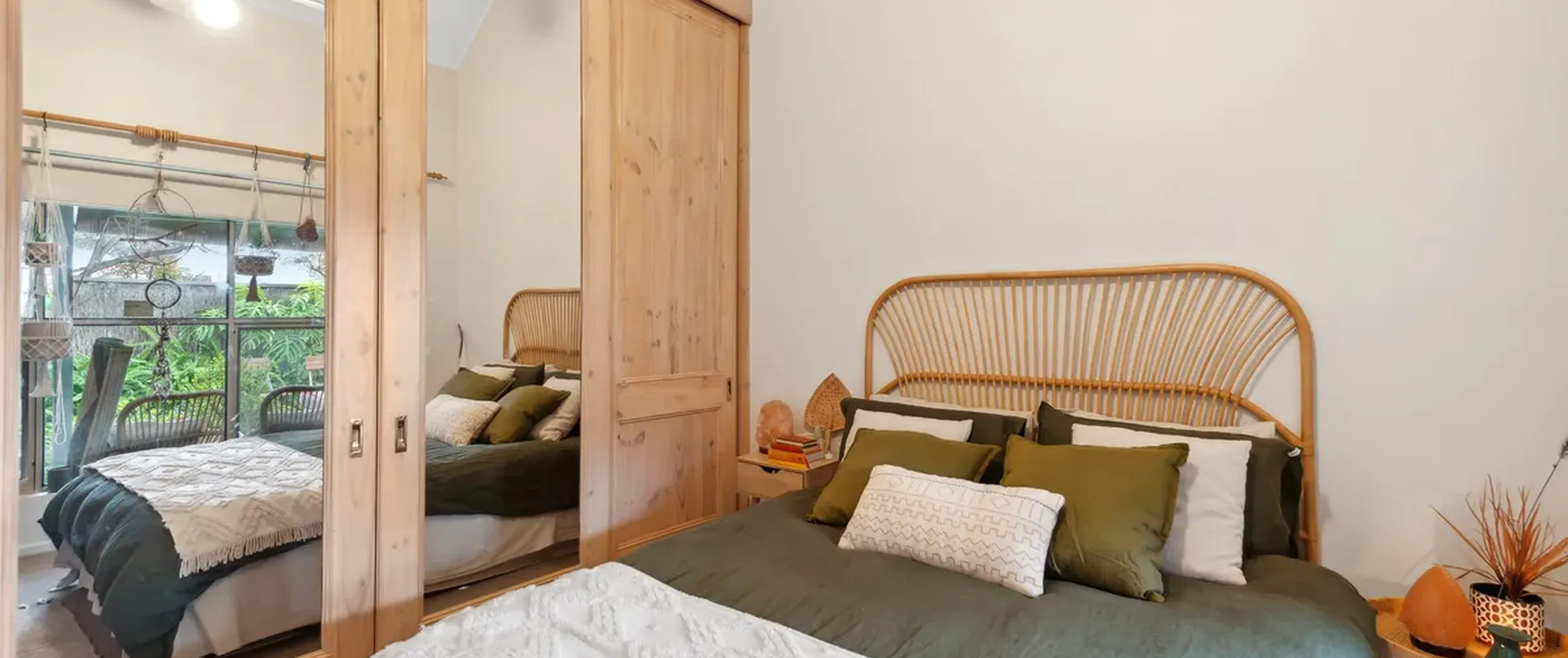 - Open plan kitchen with electric cooking generous cupboards and bench space open to living room and split system A/C