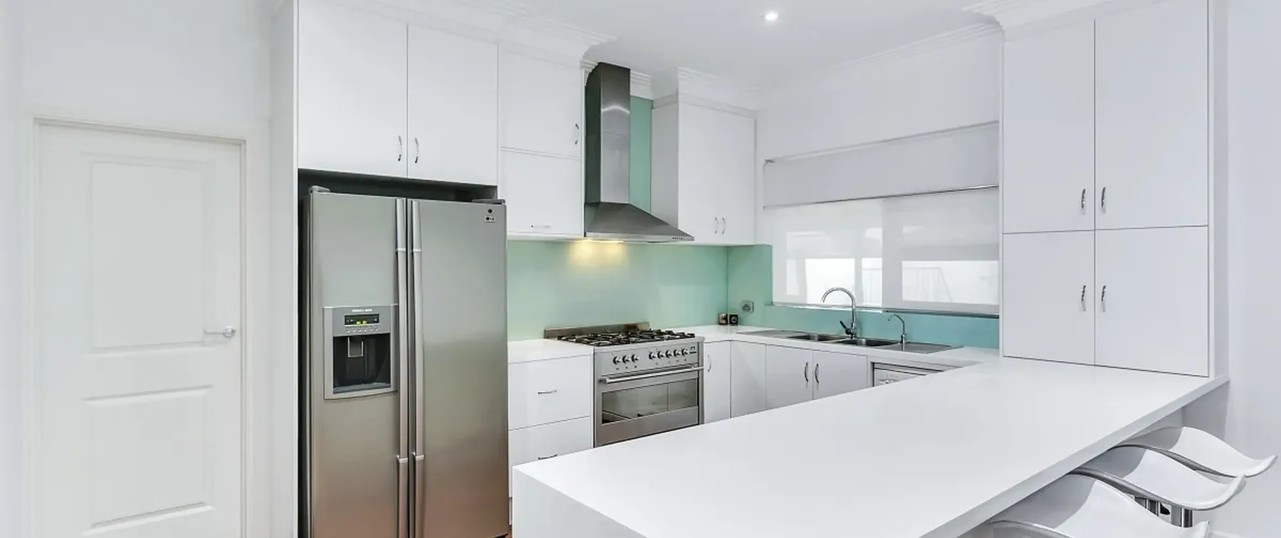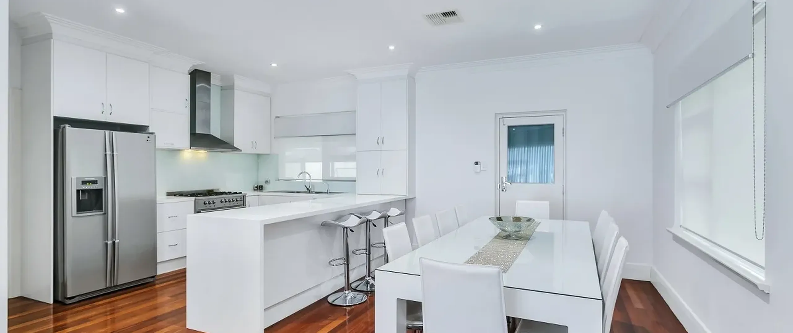 - Modern kitchen with gas cooktop, ample bench and cupboard space, walk-in pantry and breakfast bar