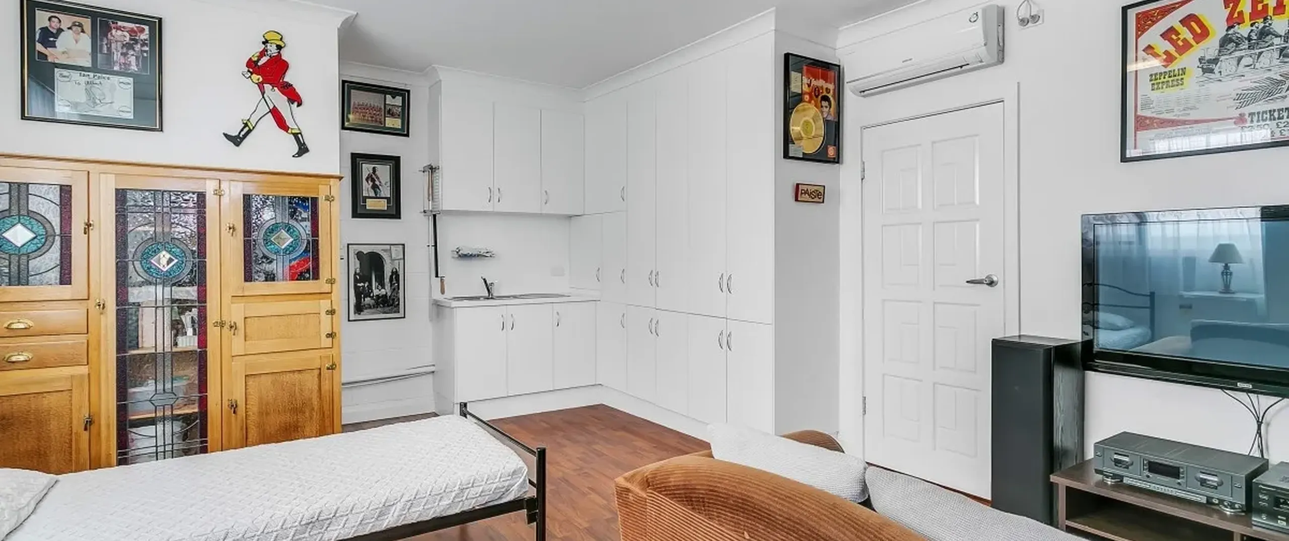 - Additional bedroom 4/rumpus room attached to studio with split-system air conditioner, built-in storage and toilet