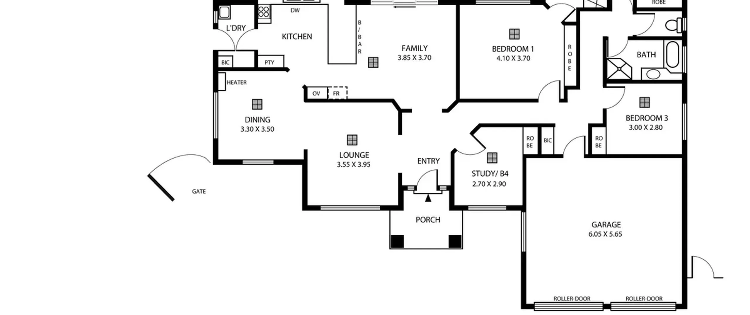 - Double garage under main roof with roller doors and internal access