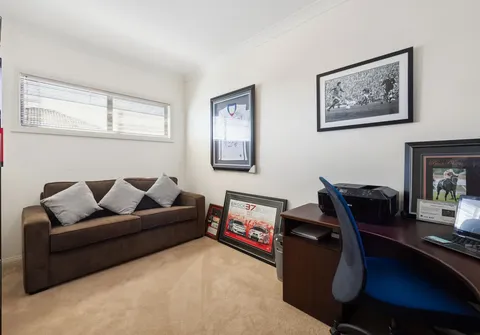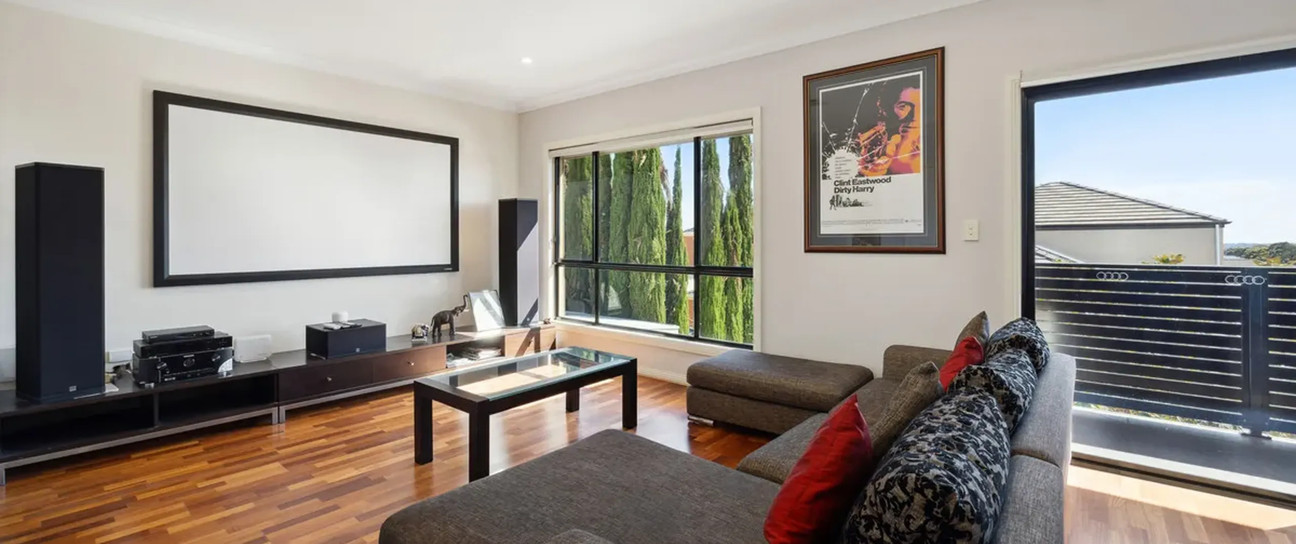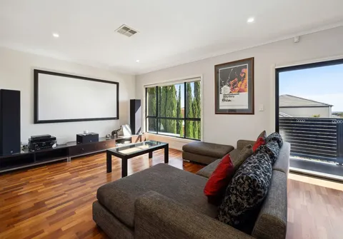 The show-stopping layout of this residence further impresses with a guest bedroom on the lower level, complete with a walk-in robe and access to a well-appointed bathroom. Ascend to the upper level, where you'll find three bedrooms, including a commodious master suite that boasts a large walk-in robe, a private balcony, and access to a luxurious bathroom equipped with a bath, shower, and a separate toilet. Completing the upper level is a versatile home office, which could easily serve as a nursery or an additional bedroom, and a spacious living room that doubles as a private home theatre and opens onto an enclosed balcony with breathtaking views, making this executive home a grand haven.