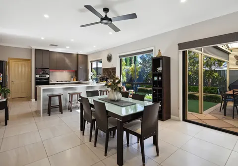 Entertaining family and friends will be a delight in the undercover entertaining area, overlooking the serene backyard with its shimmering in-ground swimming pool—an ideal setting for the entire family to relish. Parking is a breeze with a double garage and an extra-wide driveway offering ample off-street parking.