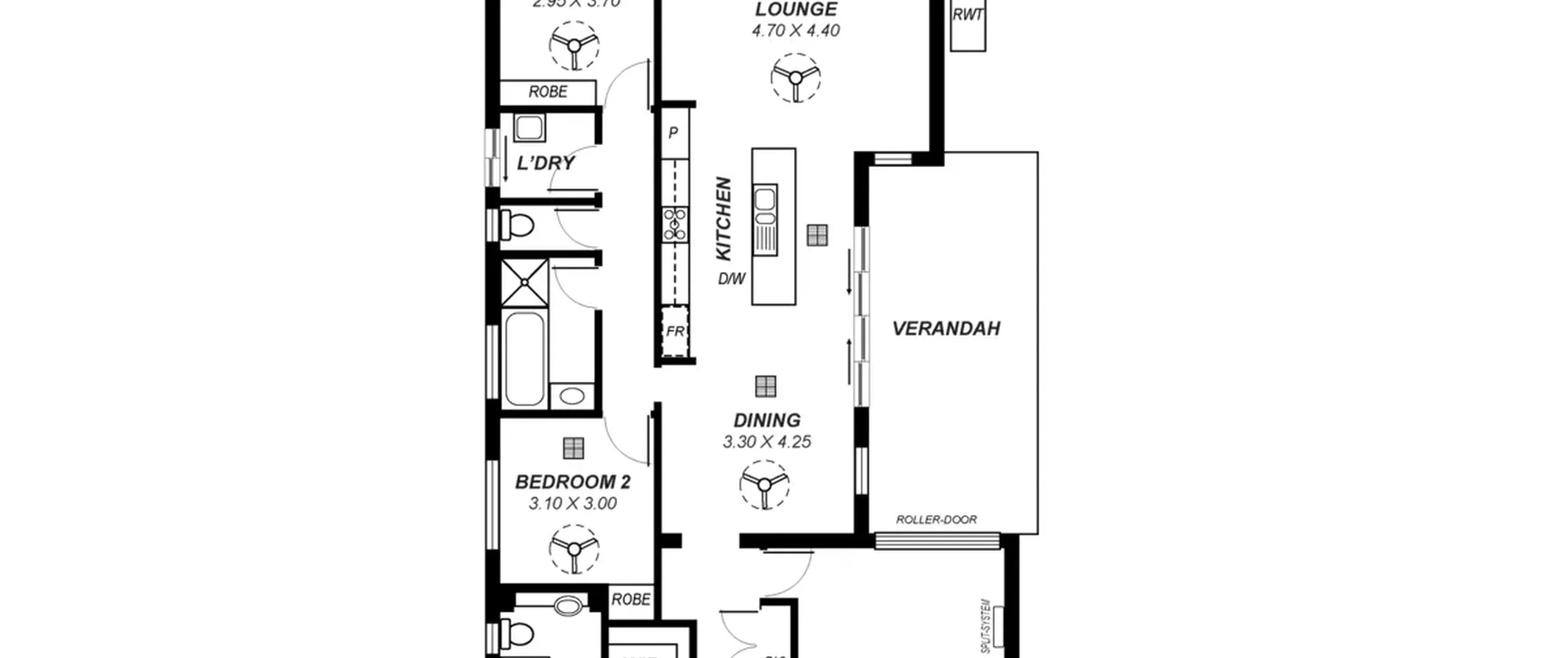 - Single drive through garage with automatic roller door + direct internal access to the home