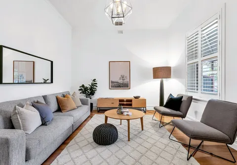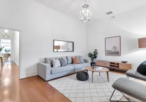Set behind a stunning sandstone façade is this very rare Torrens Titled cottage, fully renovated and offering the very best in contemporary living and location. The original sash windows, 3.2m high ceilings, heritage skirting and polished timber floors have been paired perfectly with luxurious upgrades to ensure complete comfort and style