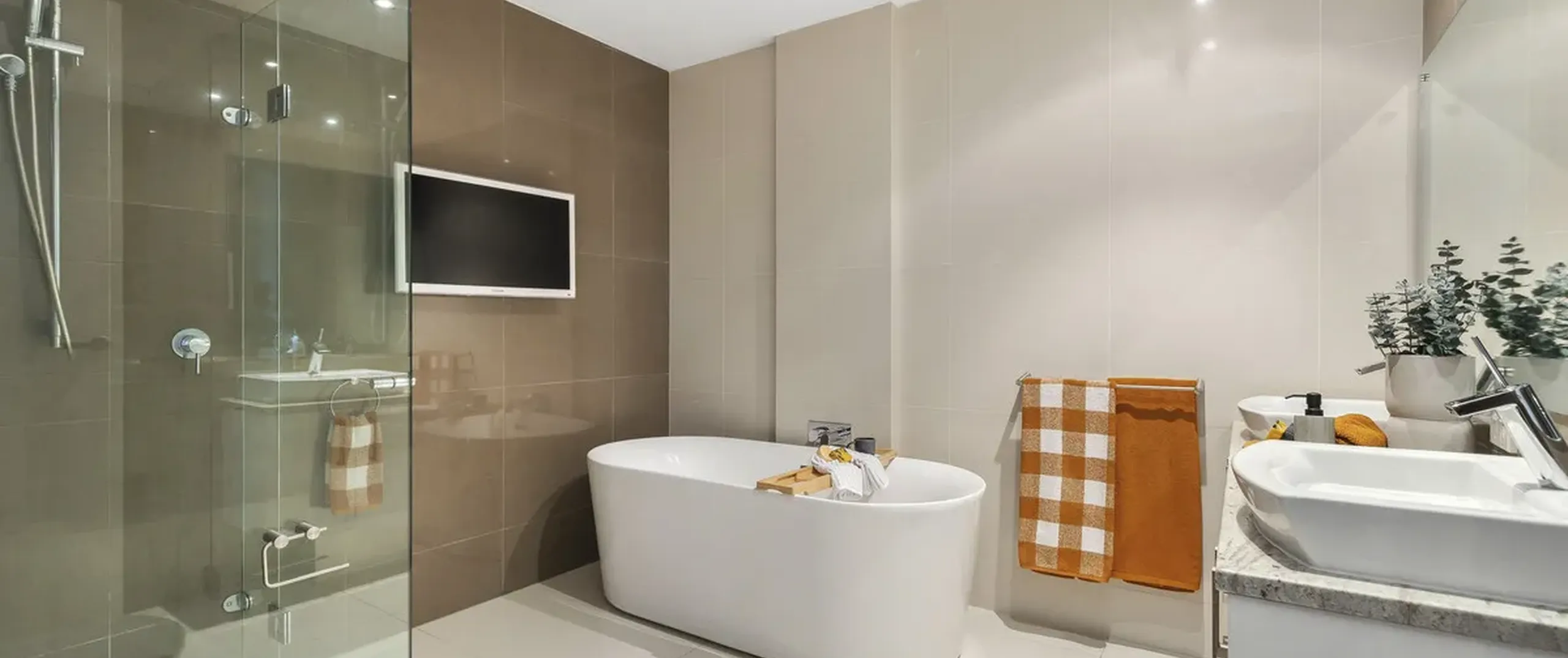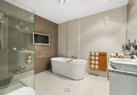 - Main bathroom boasting a luxurious freestanding bathtub, generous shower, large double basin and floor to ceiling tiles