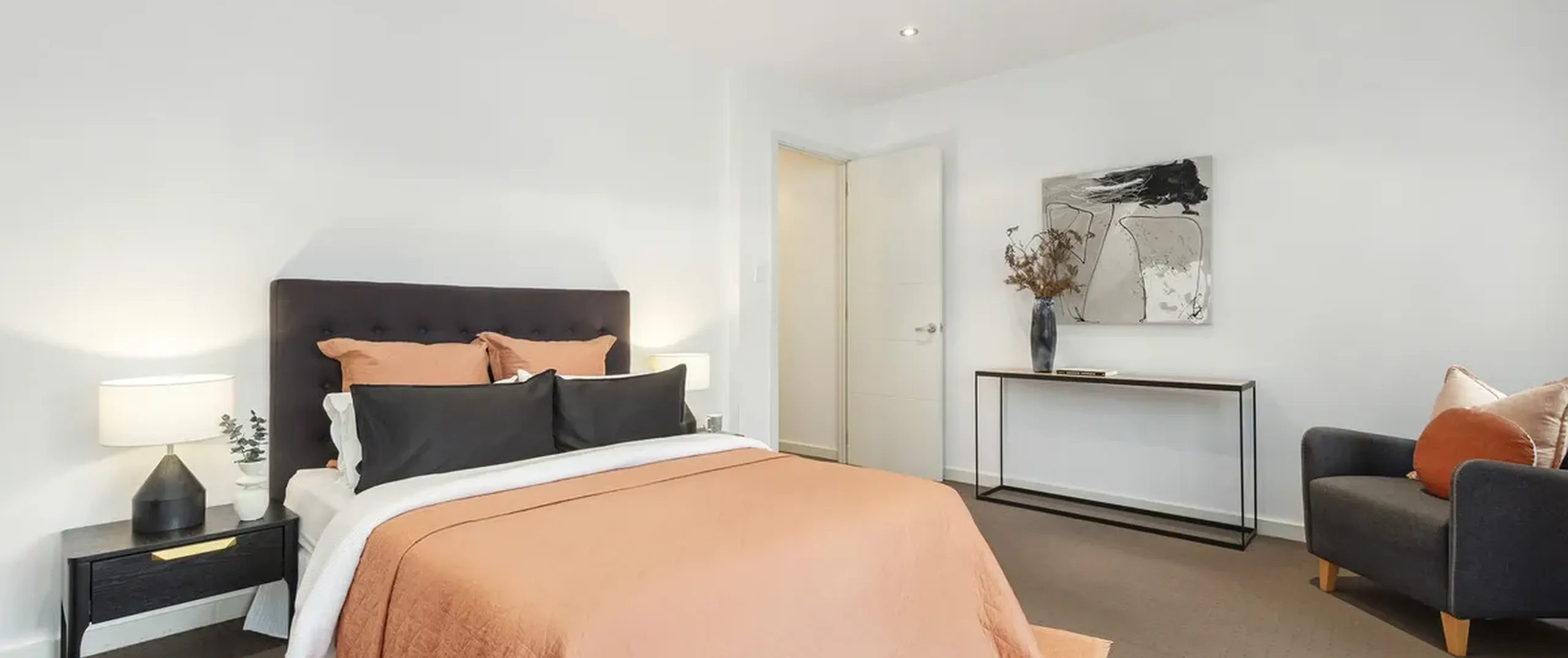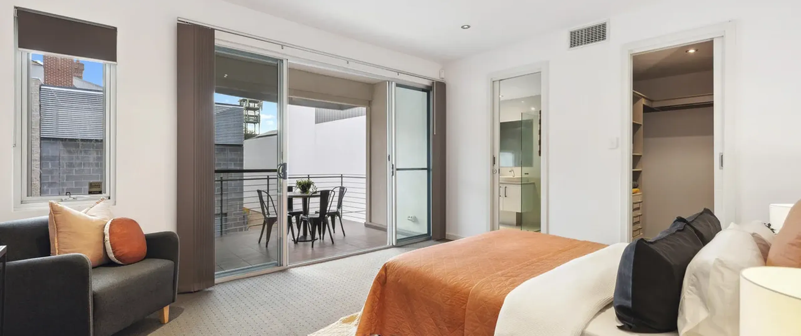 - Master bedroom with a luxurious bathroom with his and her basin, walk-in robe and private balcony overlooking the courtyard
