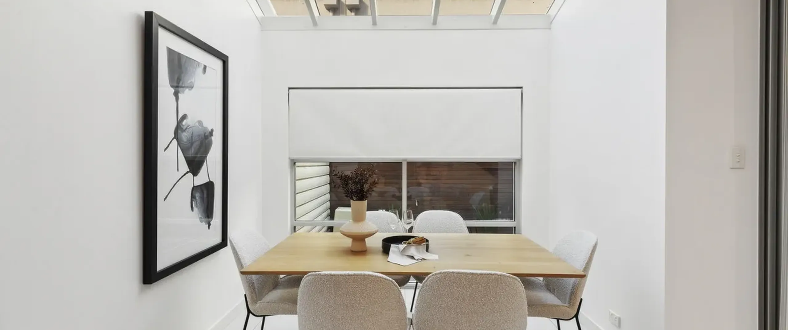 - Unique glass ceiling above the dining space
