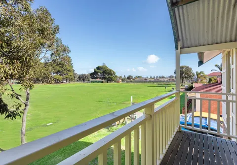 An internal staircase leads to the upper level with three bedrooms, two with built-in wardrobes, and the main bathroom. There is also a sunny balcony, with access via two bedrooms, perfect for relaxing afternoons spent taking in the sensational views of LeFevre Recreation Reserve and the surrounding parks.
