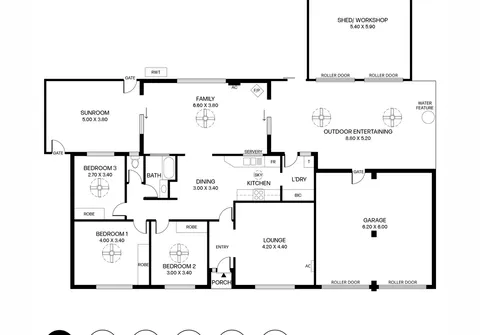 - Double garage with roller doors and external access through entertaining area