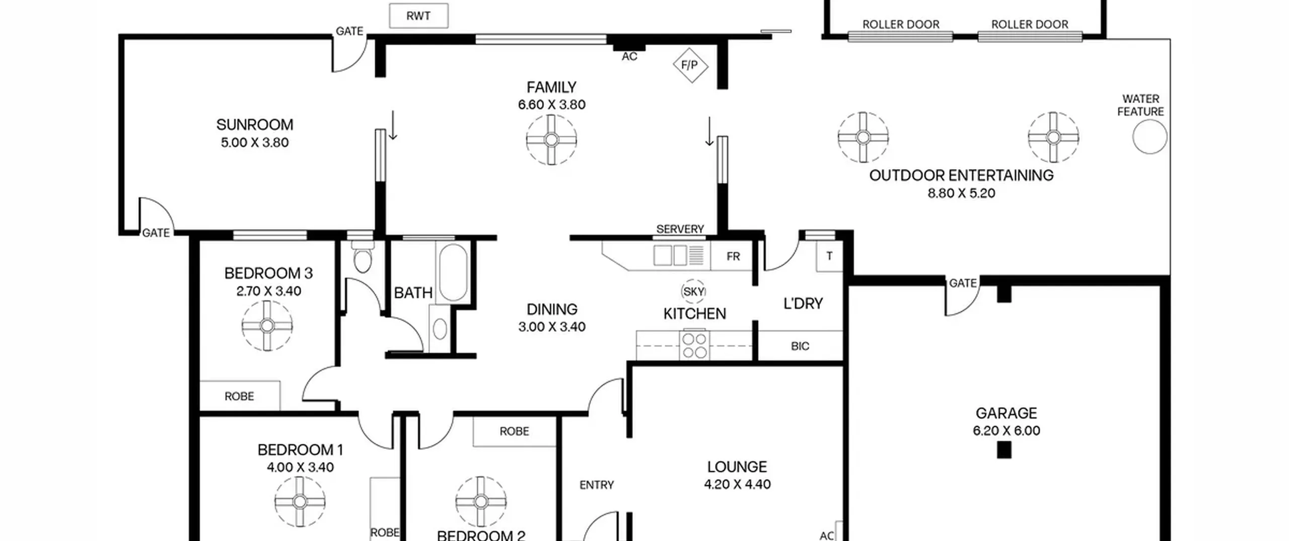 - 3 good sized bedrooms, all with ceiling fans and built-in robes