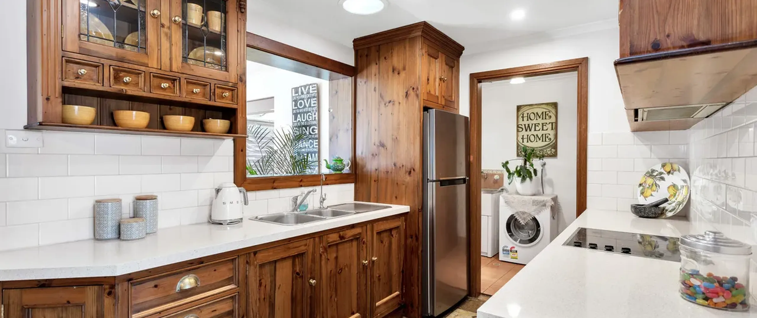 - Practical laundry offering built-in cupboard and external access