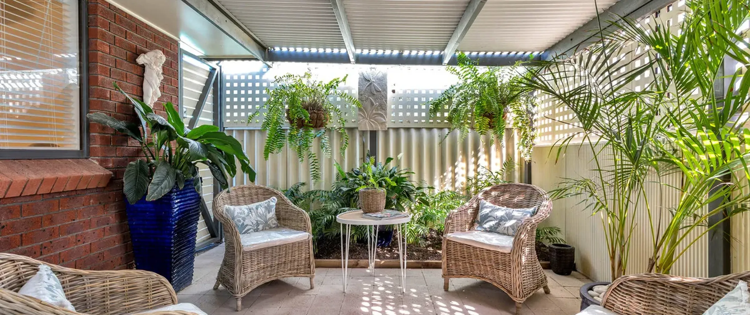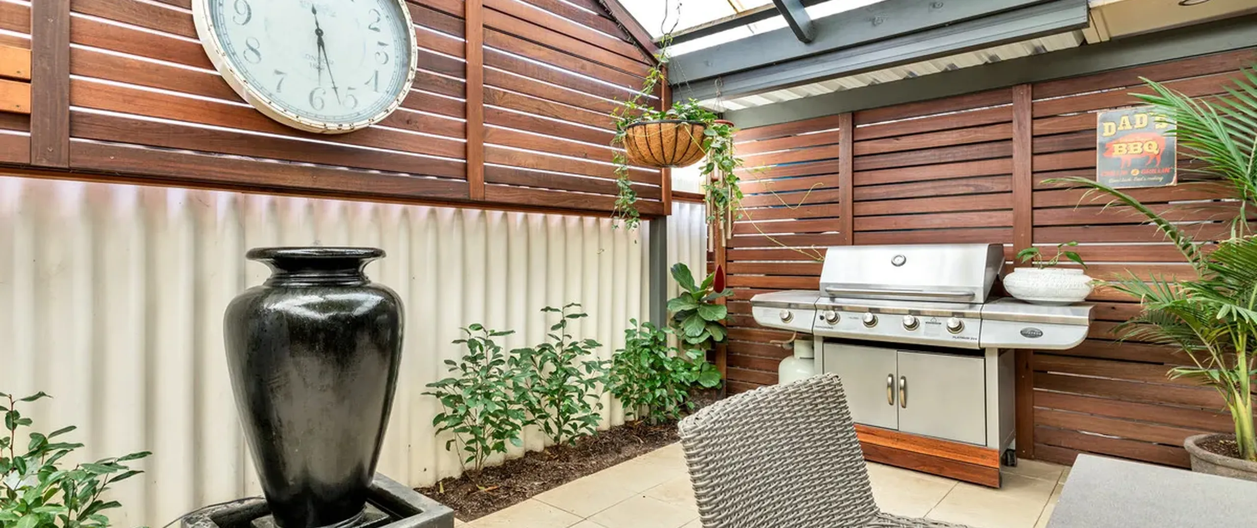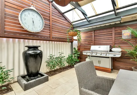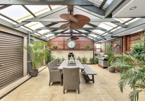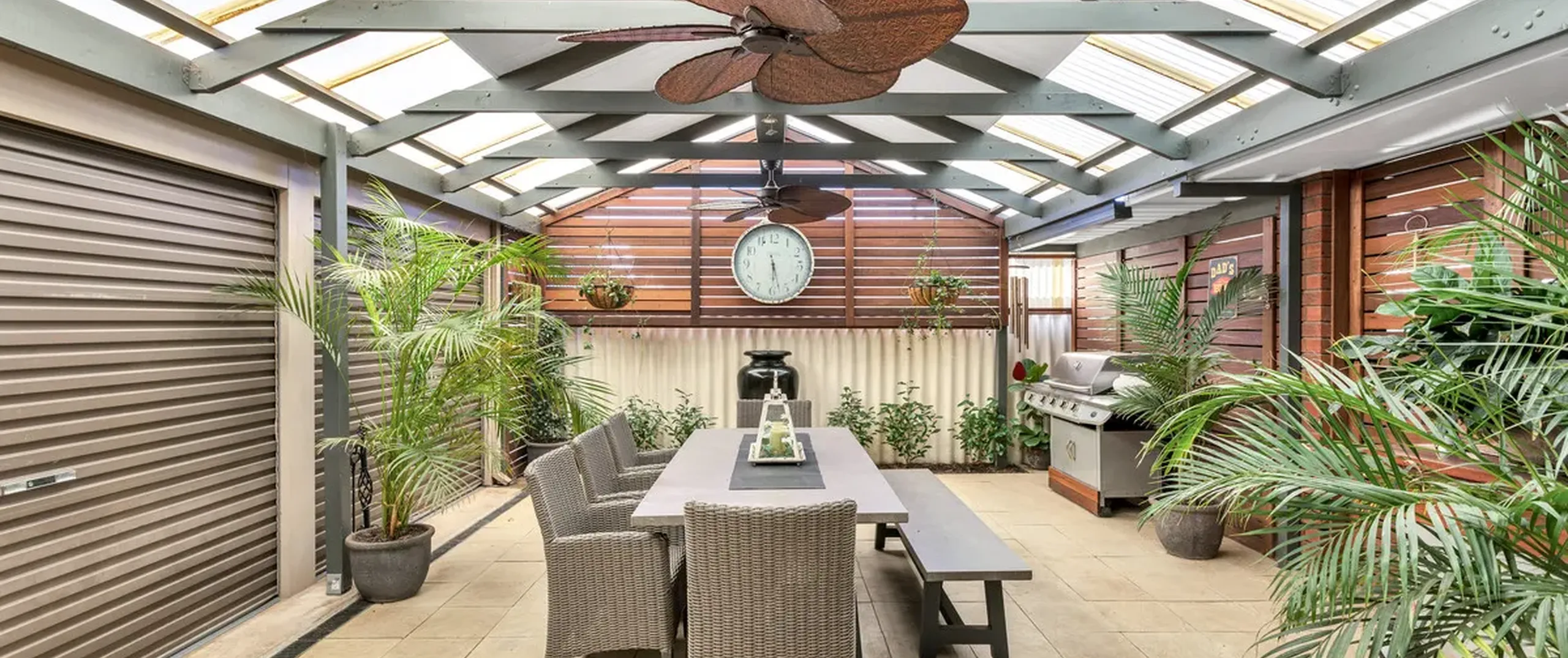 - Impressive enclosed outdoor entertaining area with ceiling fans and water feature
