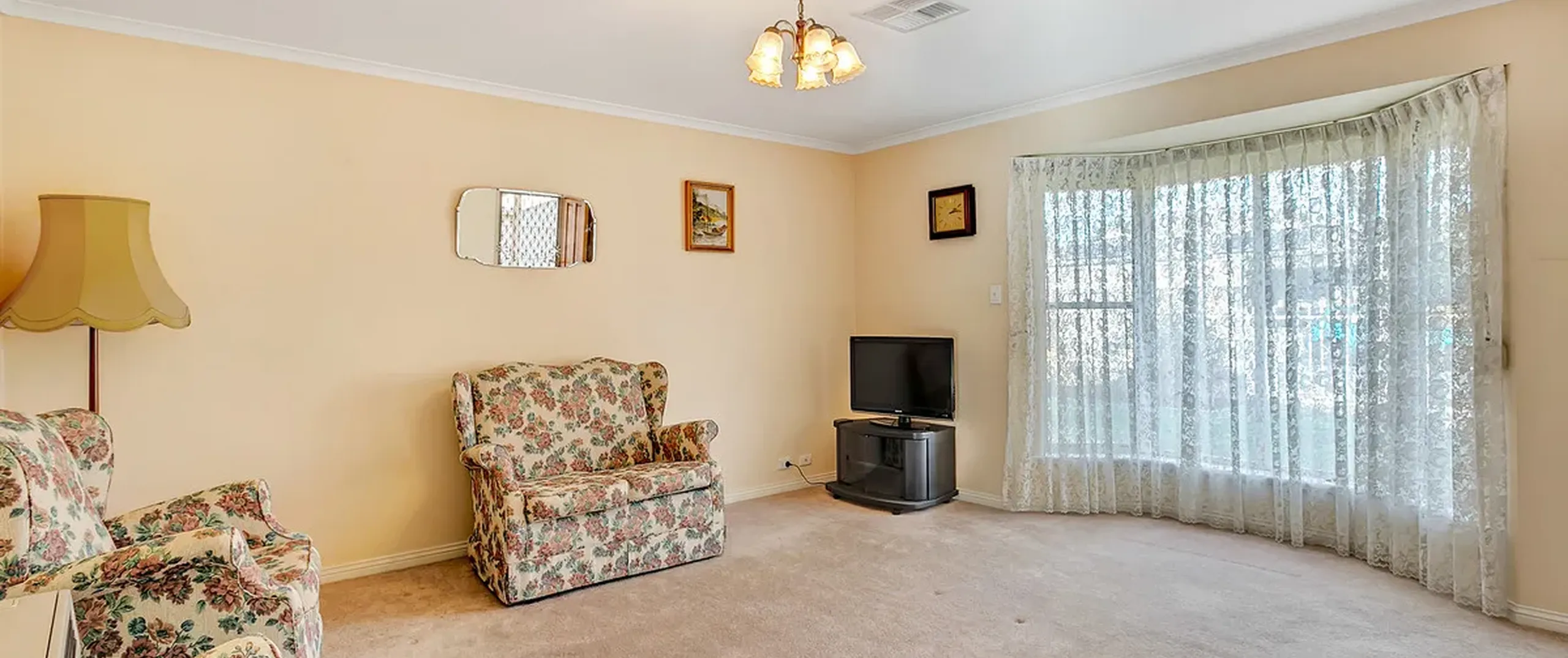 - Separate lounge room with gas heater and bay window