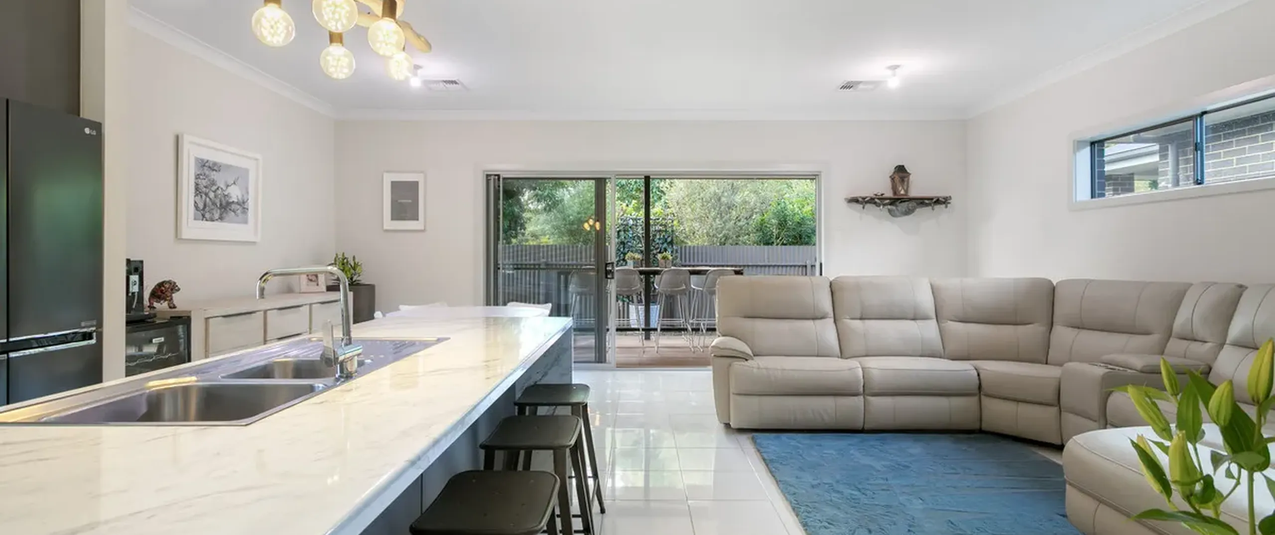 The kitchen is well-equipped for home chefs of all varieties with ample cupboard and bench space plus quality appliances for all to cook up a storm. The open plan living area offers space for both dining and living in style without the need to compromise on either.