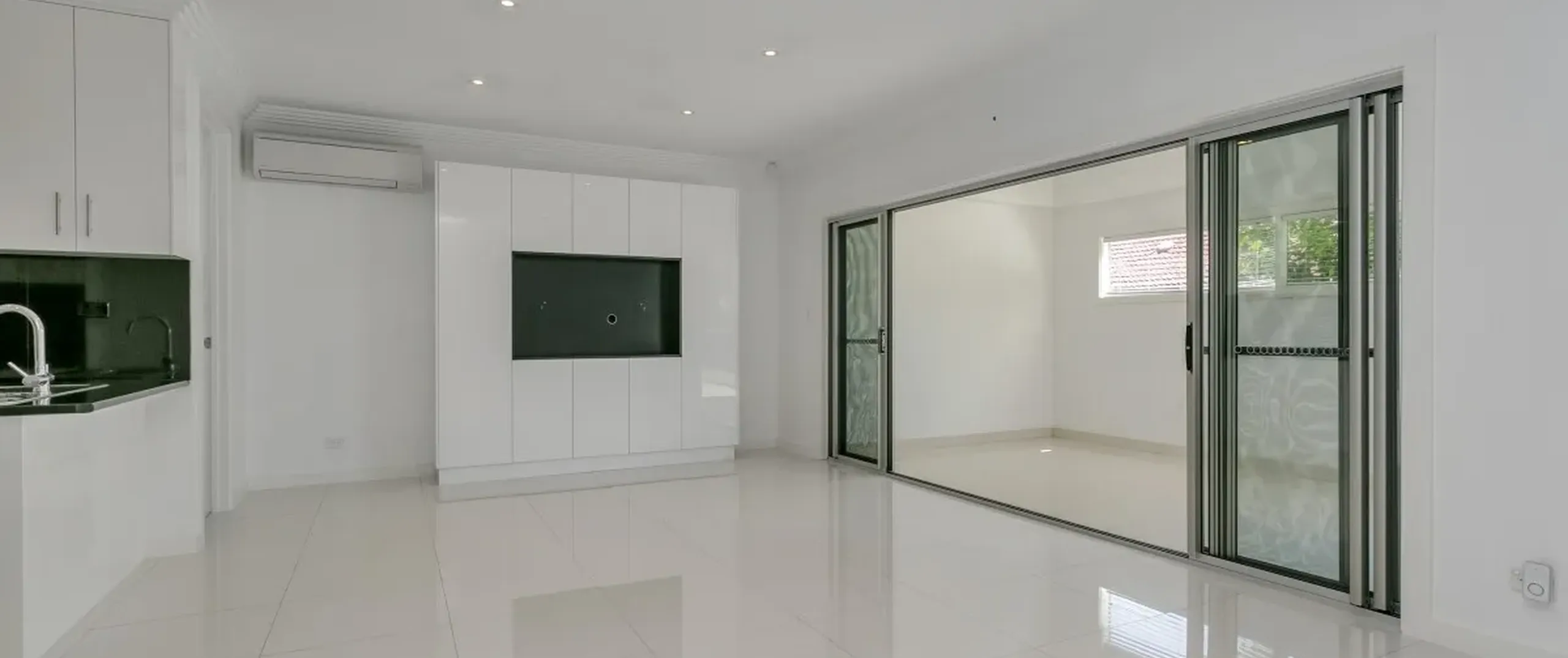 - Spacious open plan living and dining with split system air-conditioner and built-in wall unit