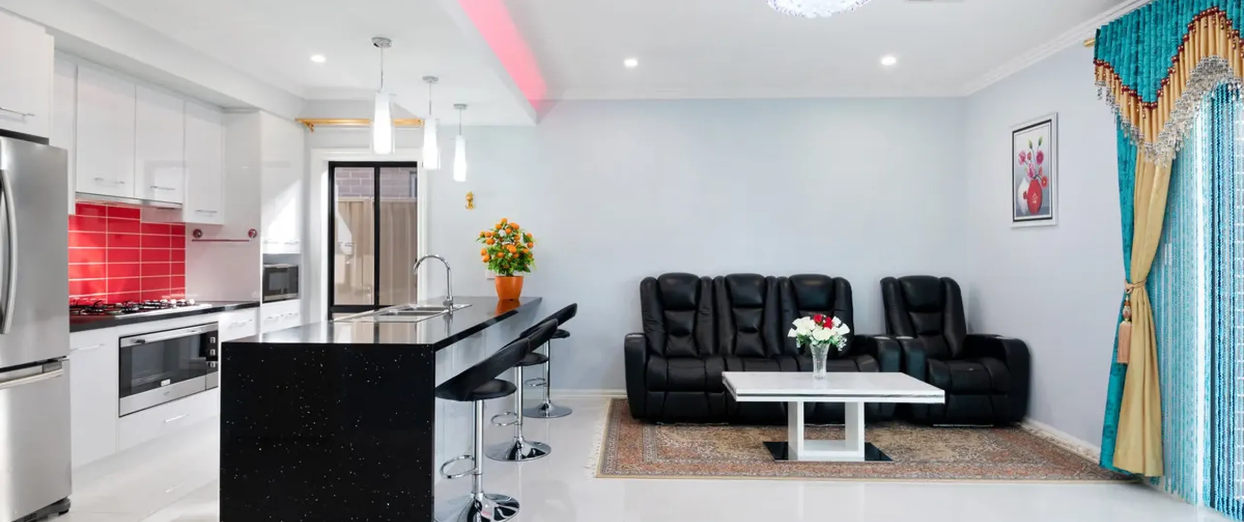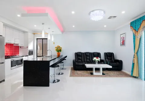 - Beautiful light filled open plan living, dining and kitchen area featuring double sliding doors that opens out to the outdoor entertaining area