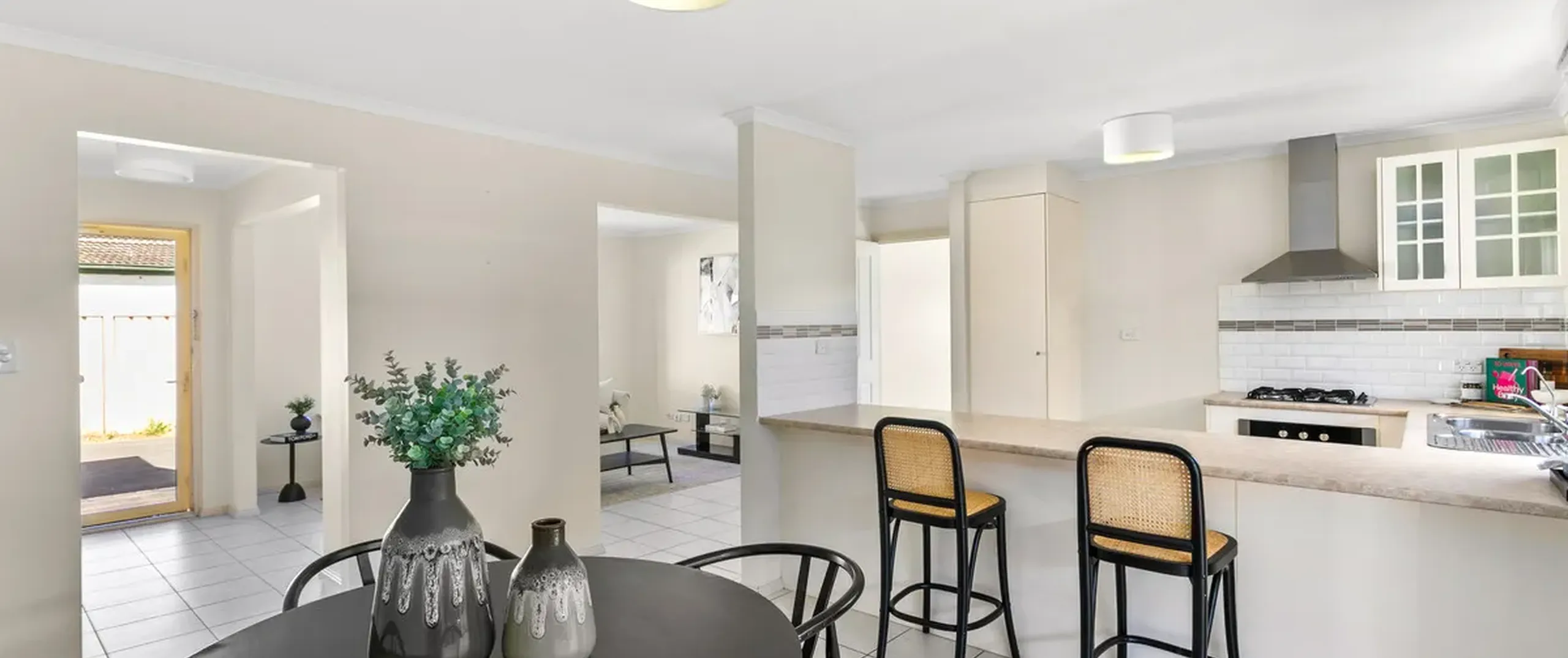 - Dining area adjacent kitchen, complete with split system air conditioner