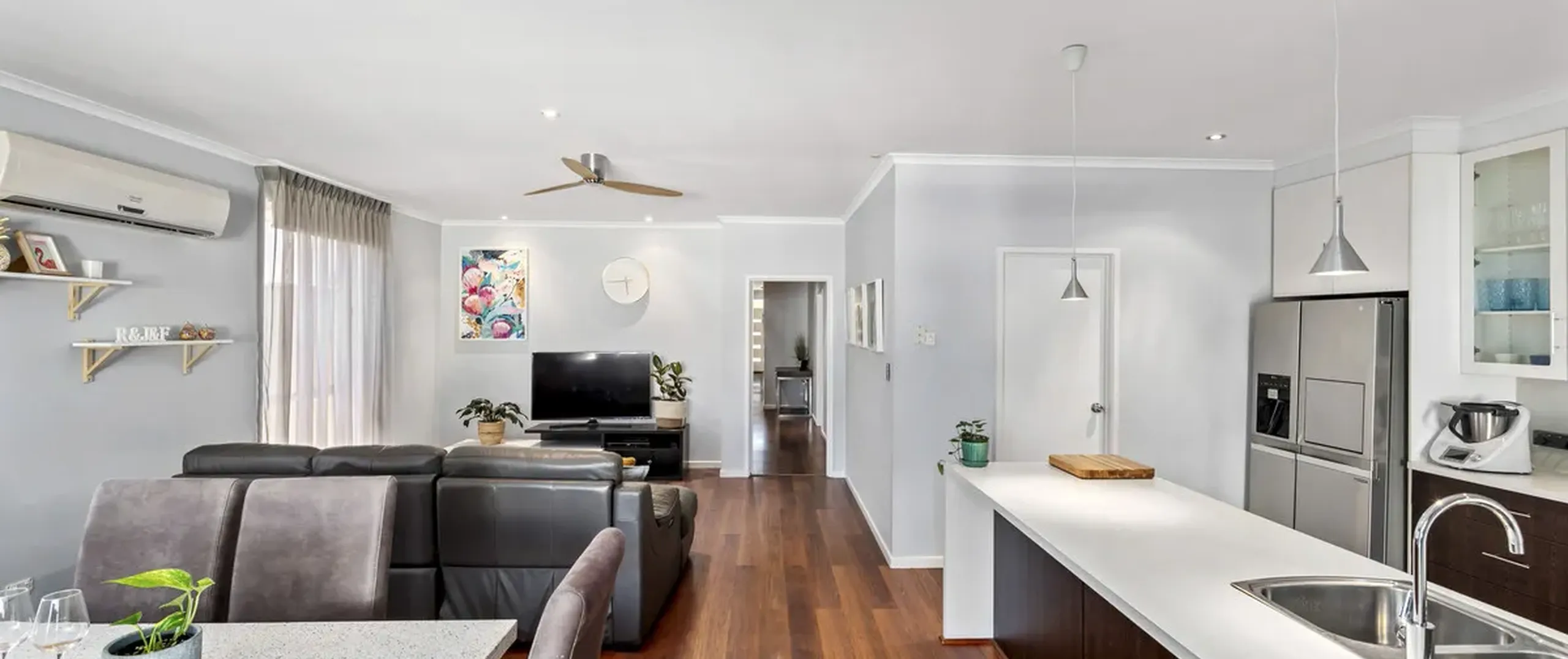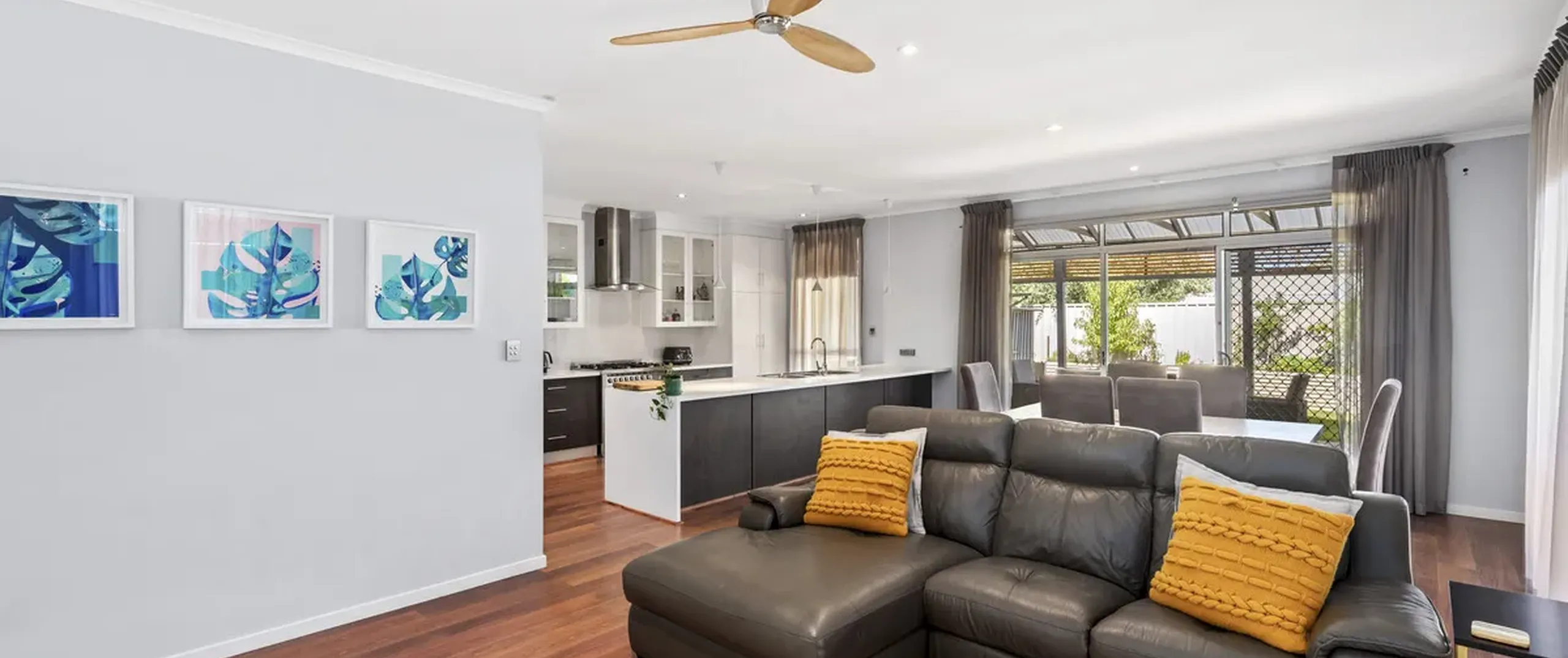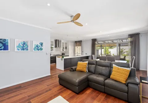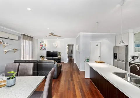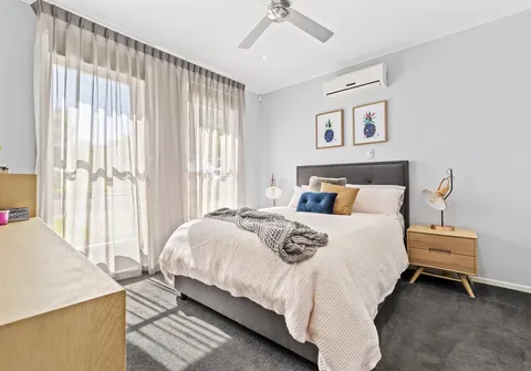 - Open plan living and meals with ceiling fan and split system air conditioner for year-round comfort
