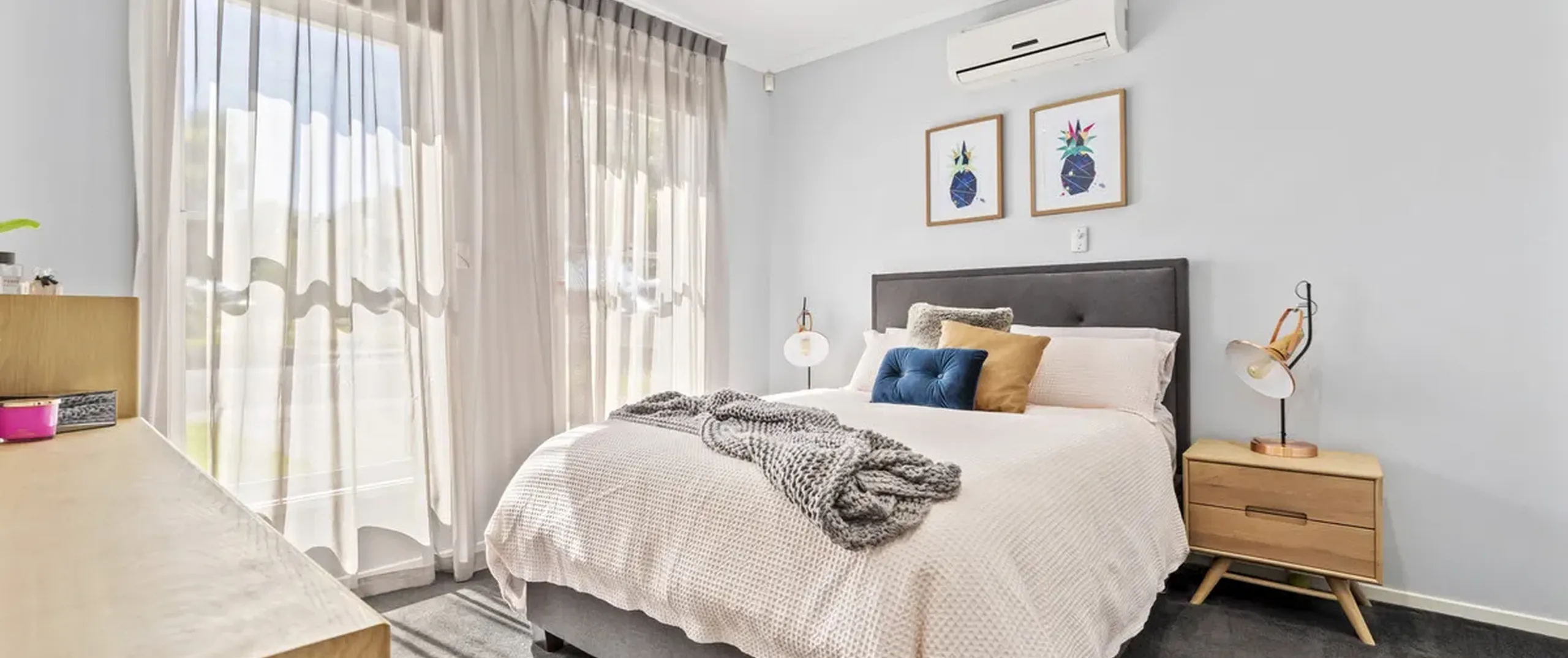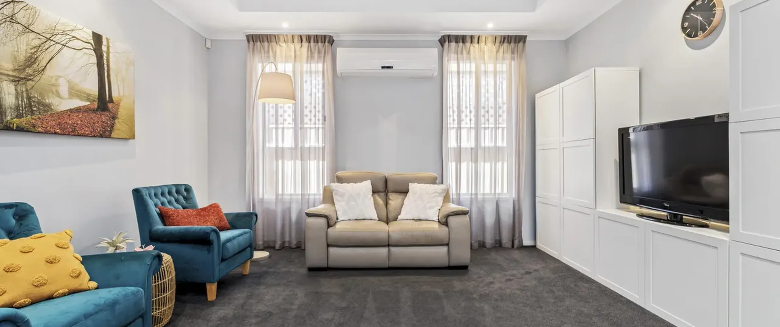 - Spacious separate living room with split system air conditioner