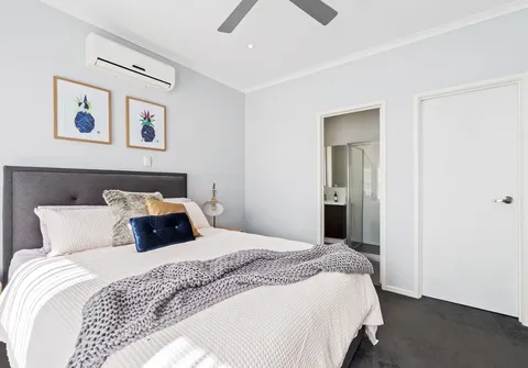 - Light filled main bedroom complete with split system air conditioner, ceiling fan, walk-in robe and ensuite