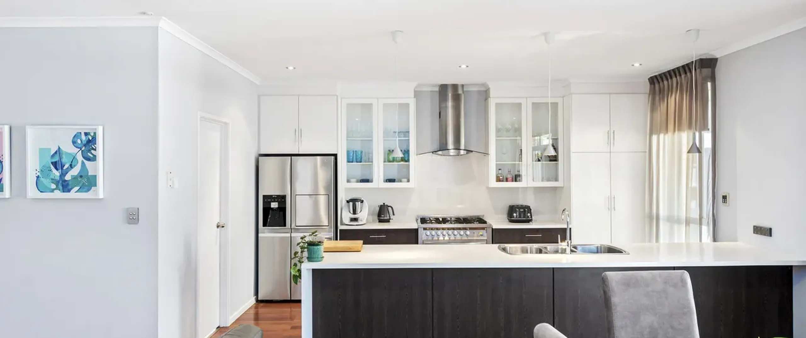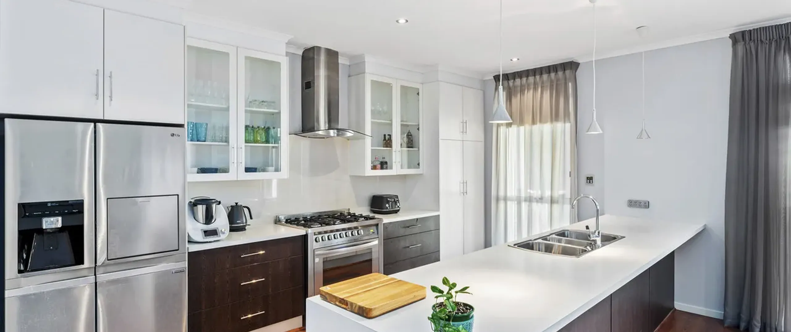 - Stylish kitchen featuring breakfast bar, ample cupboard and bench space and stainless steel appliances including a dishwasher