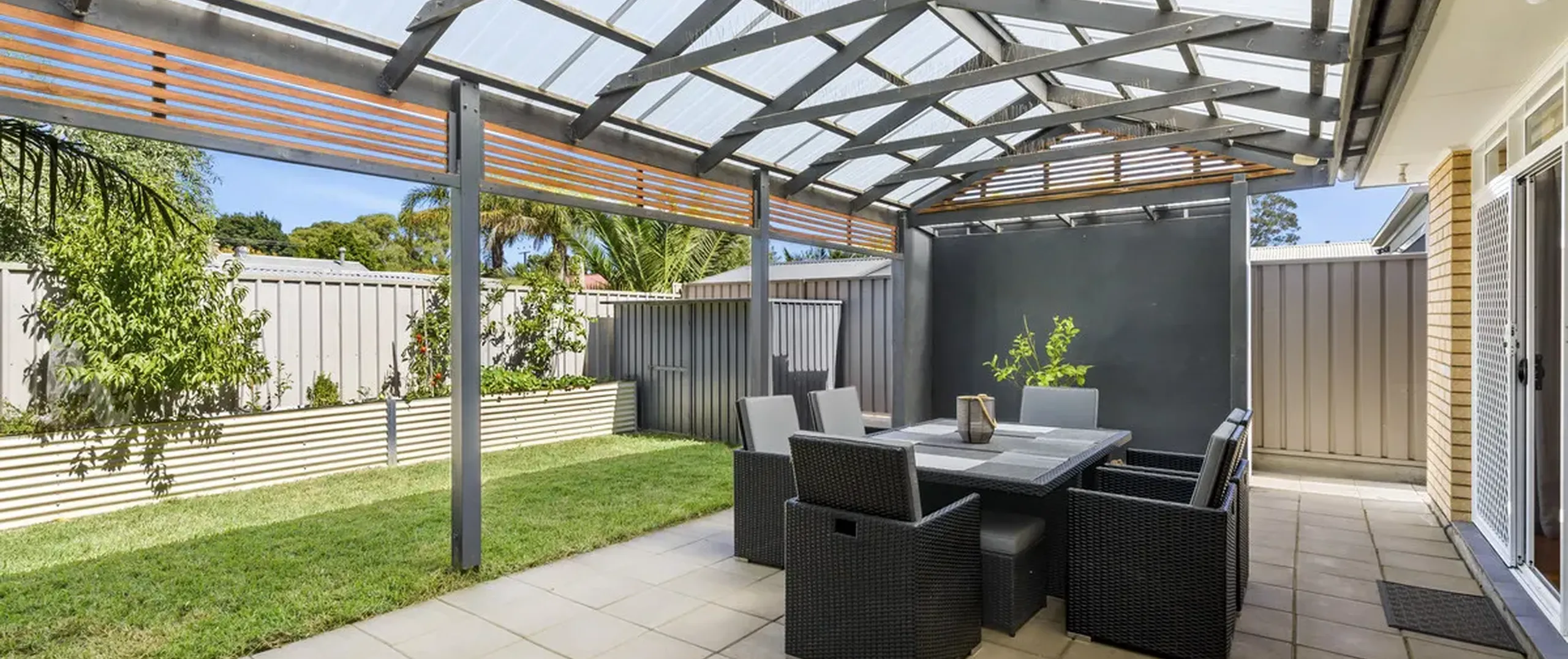 - Side courtyard with pergola