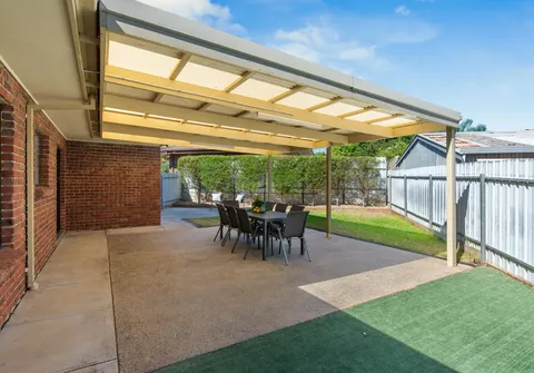 Outside, a spacious undercover entertaining area beckons, complemented by two generous outdoor areas, one featuring low-maintenance artificial lawn. Additional paving at the rear of the property provides practical space for a trailer or boat.