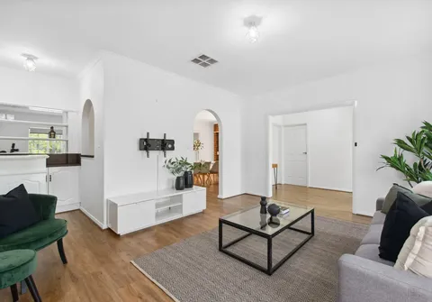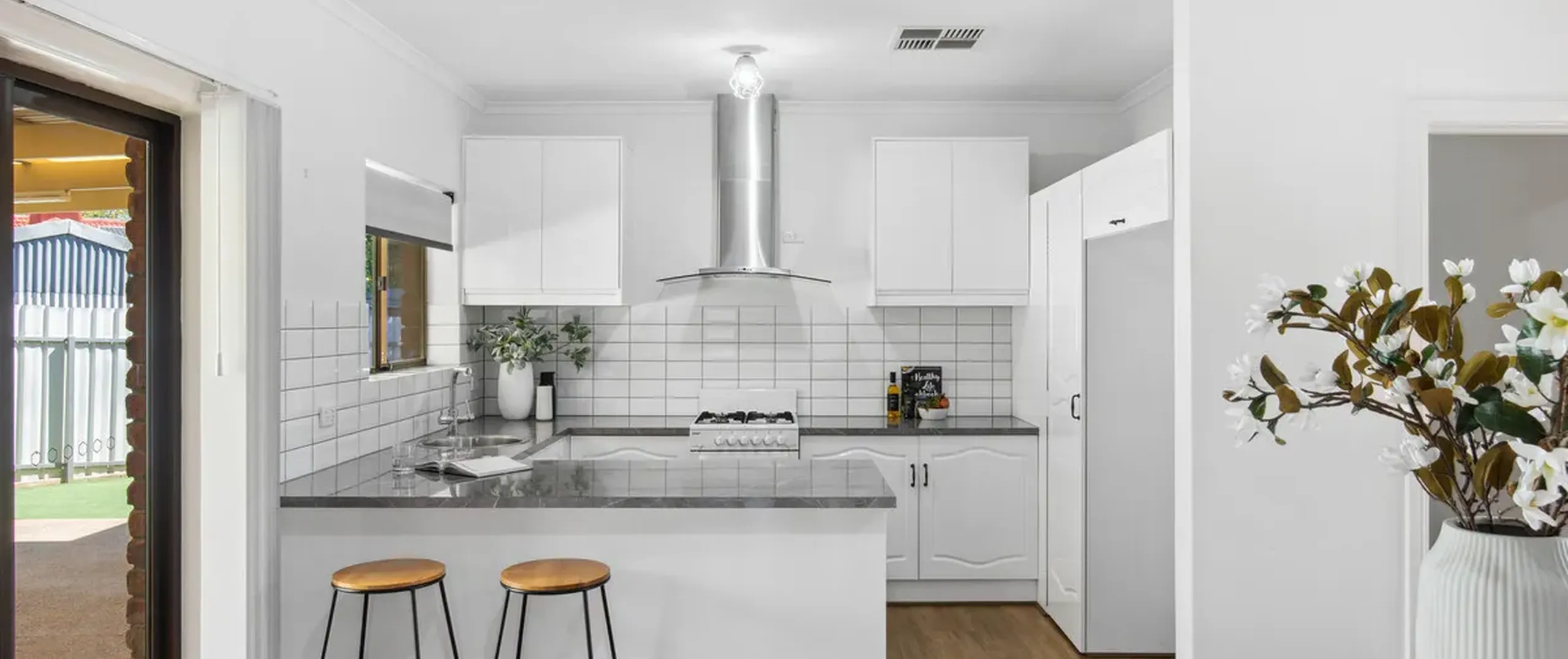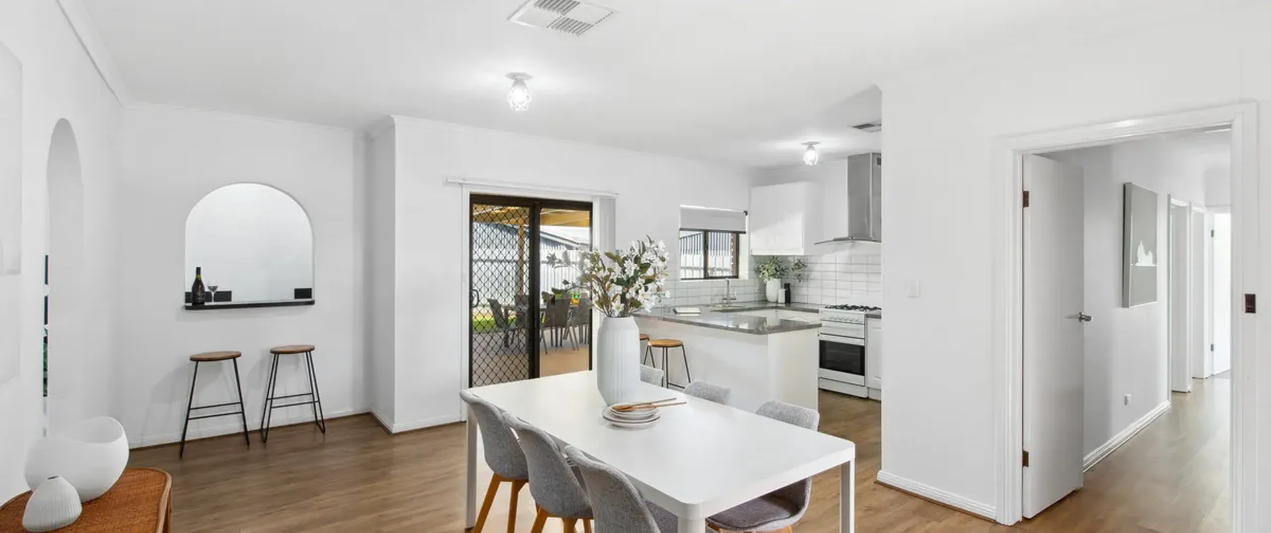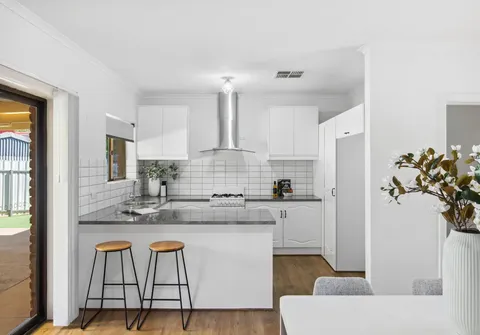 Eye-catching contemporary style was the driving force behind the expert renovation of this deceptively spacious, freestanding, four-bedroom home built in the early nineties. Welcomed by a red double brick exterior, the interior unfolds into a delightfully fresh space, seamlessly transitioning from cozy to chic as a family-friendly floorplan reveals itself.