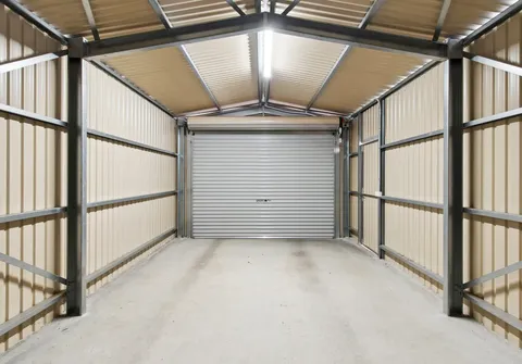 - Single car garage with front and rear roller doors featuring an automatic door to the front