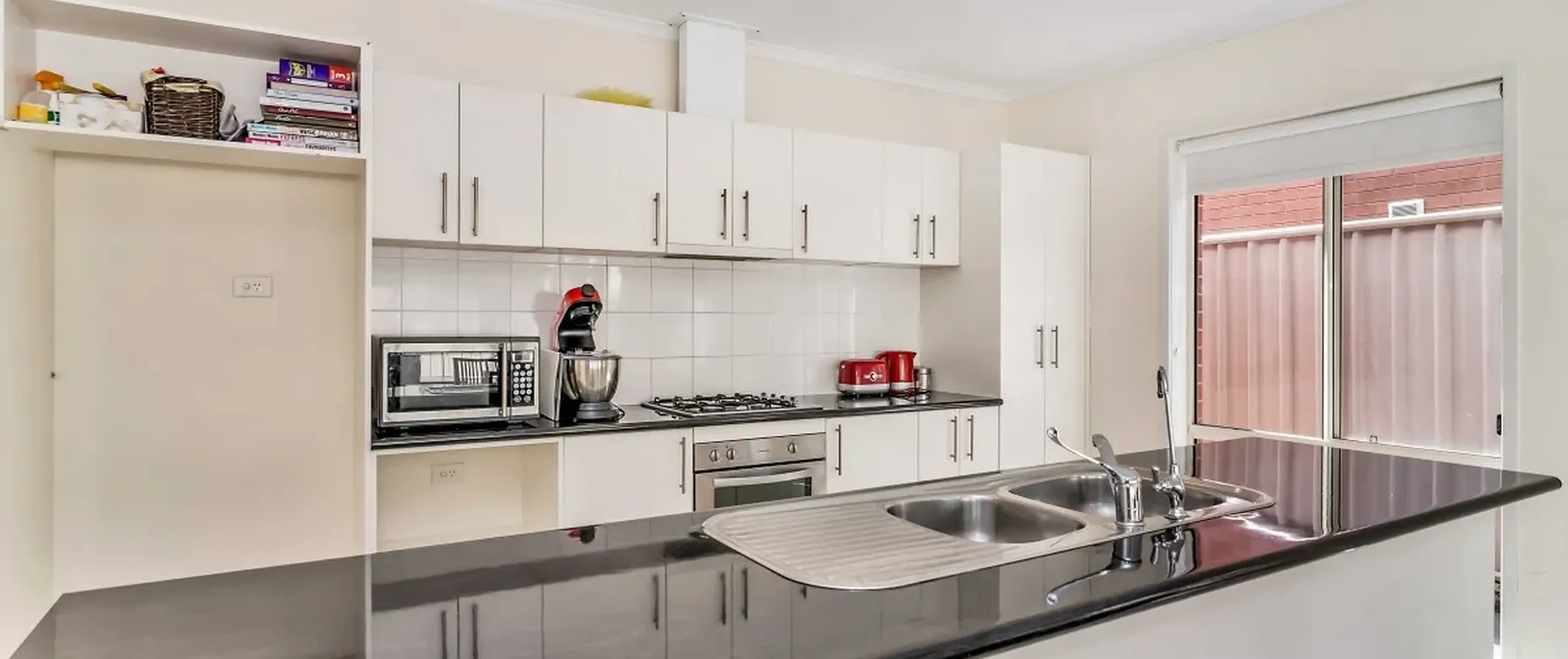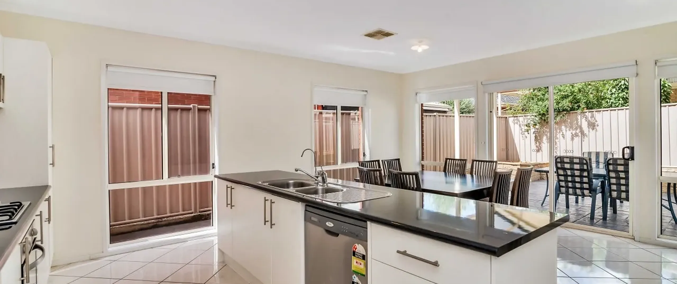 - Spacious kitchen with island bench, gas cooktop, dishwasher and breakfast bar