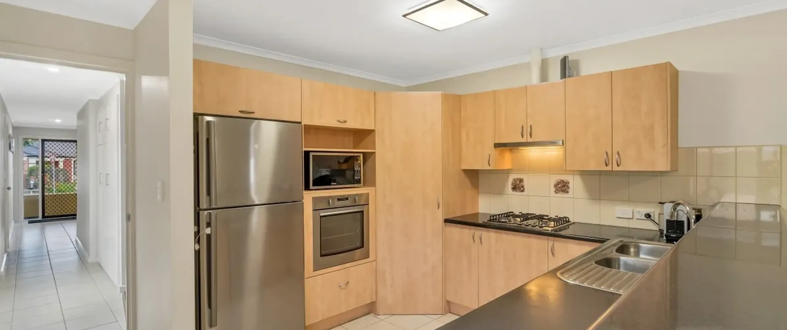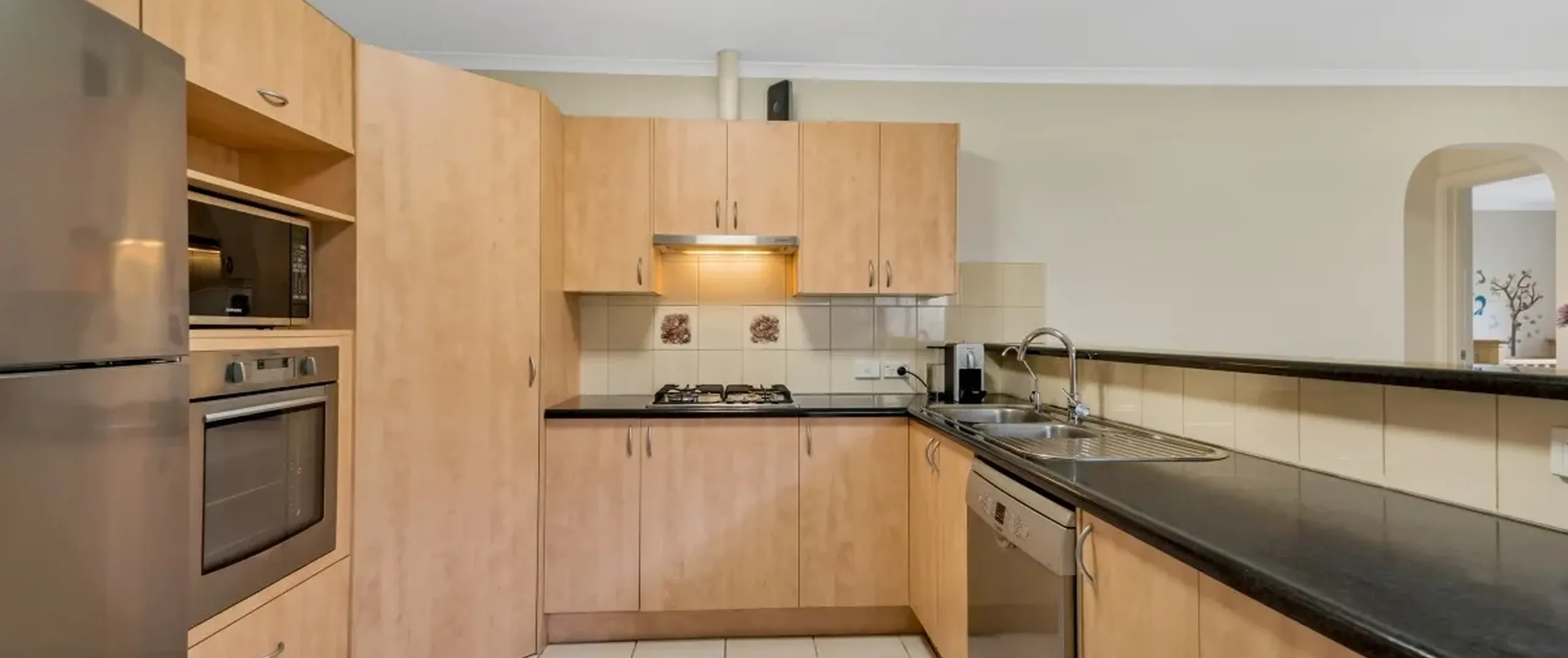 - Modern kitchen with gas cooktop, dishwasher and ample bench and cupboard space