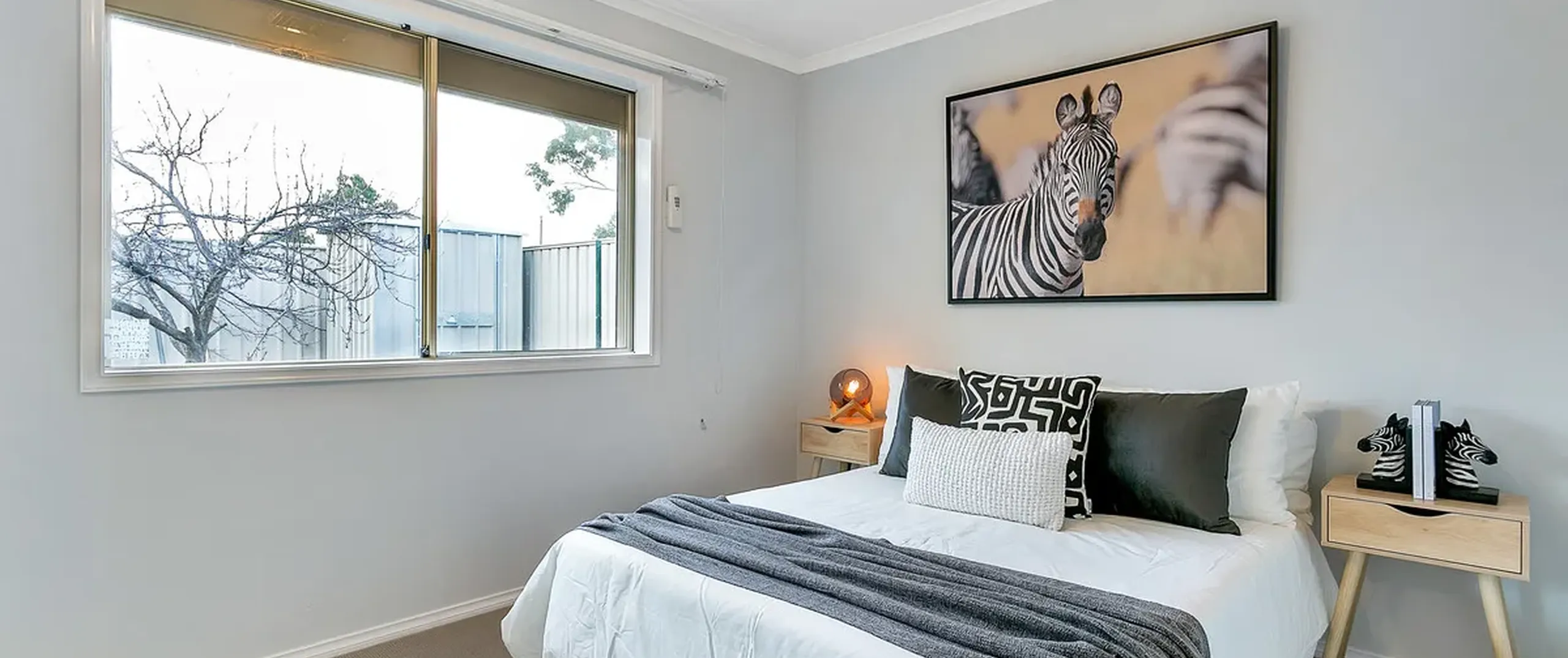 - Good sized bedrooms 2 and 3, both with built-in robes and roller shutters to windows