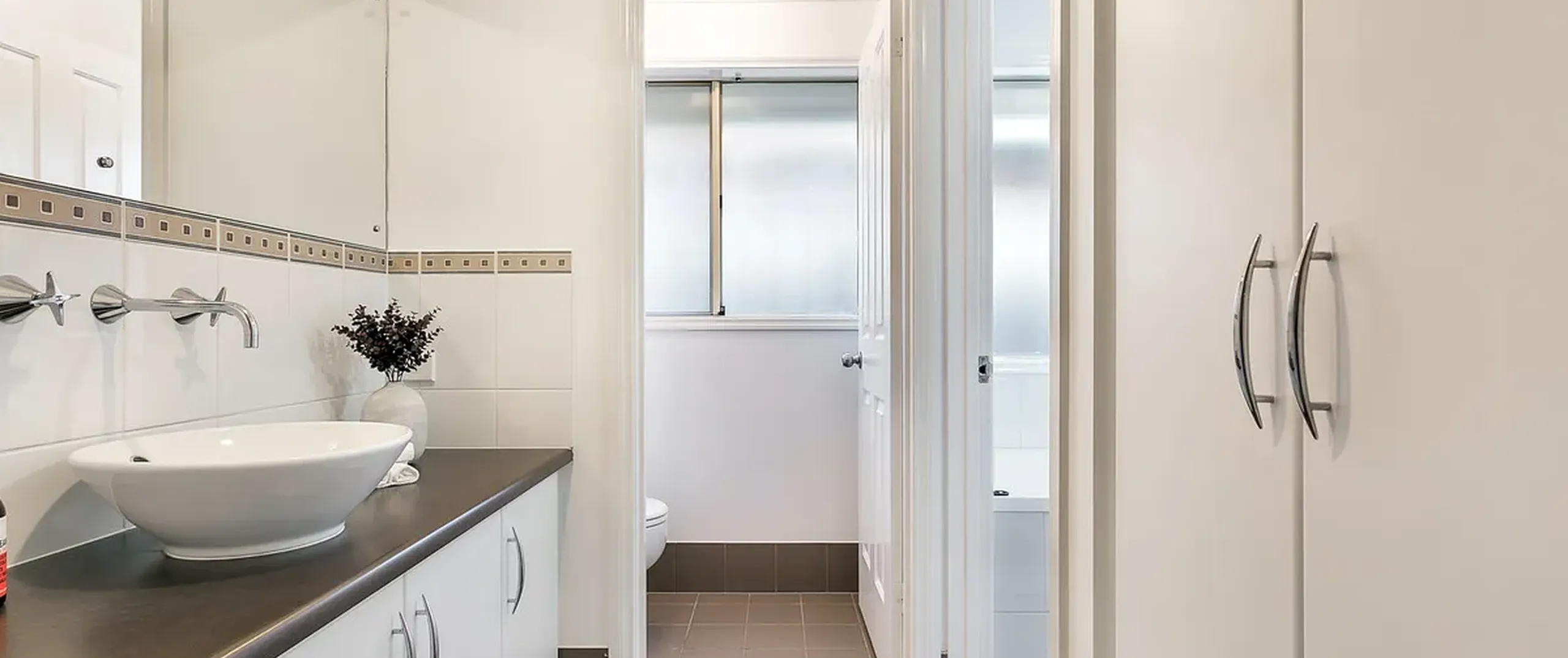 - Three-way main bathroom with separate bath and shower, separate toilet + additional storage space